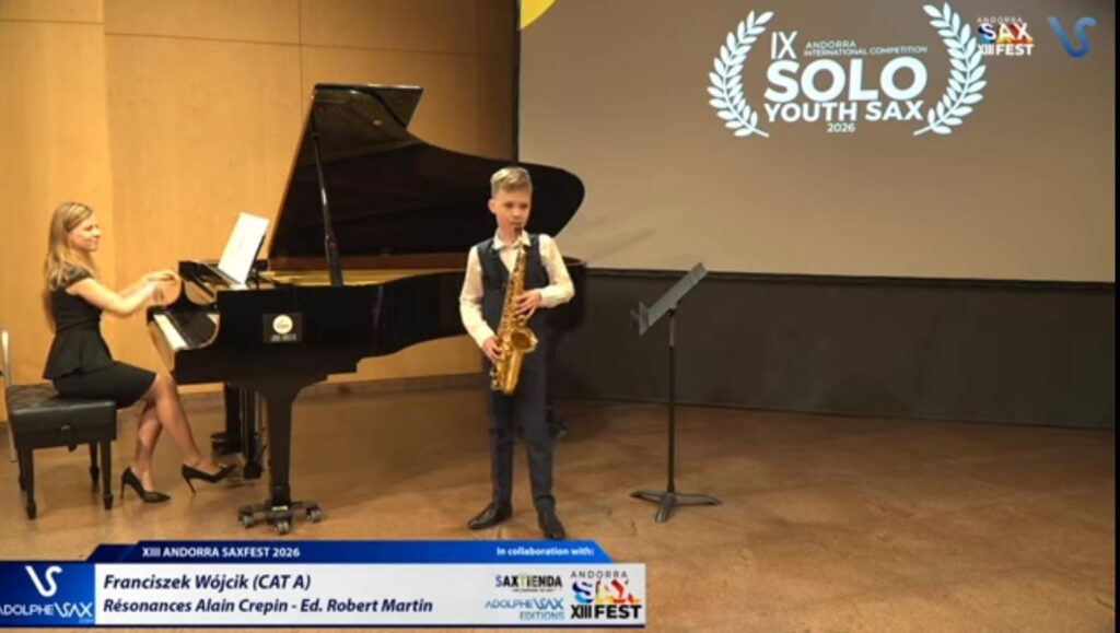 Uczeń Szkoły Podstawowej w Nowym Wiśniczu Franciszek Wójcik został laureatem I Nagrody na Międzynarodowym Konkursie Saksofonowym „Andorra International Competition – IX SOLO YOUTH SAX”, który odbywał się w ramach Andorra Sax Fest w Andorra La Vella w Andorze.