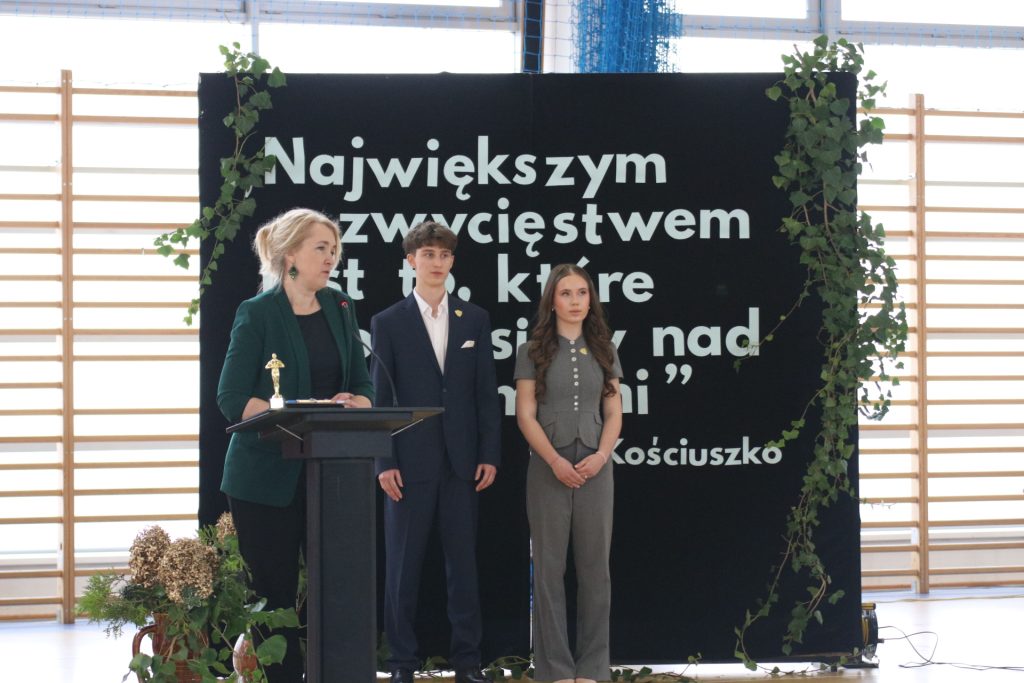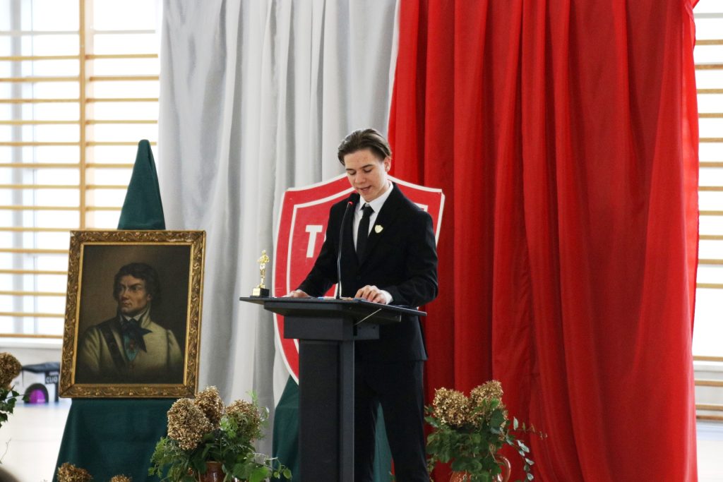 Tegoroczne obchody Święta Szkoły, które odbyły się 26 marca, były wyjątkową okazją do wspólnego upamiętnienia patrona oraz pielęgnowania szkolnych tradycji i ducha patriotyzmu. Uroczystość rozpoczęła się częścią oficjalną z udziałem pocztu sztandarowego oraz przemówieniem Pani Wicedyrektor Marty Gessek.