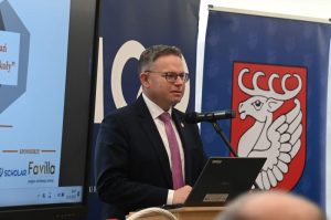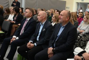 Głos zabrał także Michał Piotrowicz, członek zarządu Powiatu Świdnickiego: – Najistotniejsze słowa padną na pewno podczas paneli dyskusyjnych, natomiast chciałbym się podzielić pewną refleksją. Jako młody chłopak i uczeń, patrzyłem na strukturę szkoły, na to jak funkcjonuje, i tak sobie myślałam, to zrobiłbym w inny sposób, to bym zmienił. Kiedy zacząłem życie zawodowe, zauważyłem, iż wielu moich kolegów, współpracowników próbuje coś w tych szkołach i ośrodkach zmienić w sprawach systemowych, finansowych. Na przestrzeni tych 20 lat, przez które ewoluowała moja refleksja, bardzo dużo się pozmieniało. Mamy nowoczesne obiekty, pięknie wyposażone, doskonałą kadrę, którą tutaj reprezentujecie, i większe zrozumienie zarówno wśród organów prowadzących, kuratorium, ministerstwa, tak aby te nasze szkoły mogły jak najlepiej funkcjonować. Myślę, iż to co najcenniejszego wydarzyło się przez te ostatnie lata, to również partnerskie podejście. Wydaje mi się, iż kluczem do rozwiązania wielu naszych problemów jest spojrzenie na nie z różnej perspektywy: ucznia, rodzica, dyrektora placówki, grona pedagogicznego, kuratora, organu prowadzącego na ministerstwie skończywszy. Mam nadzieję, iż dzisiaj będziemy mieli okazję to partnerstwo rozwijać.