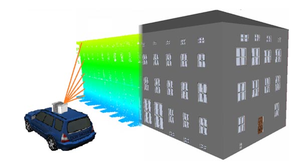 Grafika: Rekonstrukcja dokładnych cyfrowych bliźniaków przy użyciu skanera laserowego zamontowanego na samochodzie, ilustracja z publikacji zaprezentowanej w Vancouver, Canada, CVPR 2023 (wprawne oko dostrzeże przemyconą rejestrację DLW)