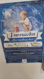 Jak co roku Nasza placówka bierze udział w akcji „Paczuszka dla Maluszka”,która trwa do 16.01.2026 dla Fundacji Krakowskiego Hospicjum dla dzieci im. księdza Józefa Tischnera. Serdecznie zapraszamy do udziału.