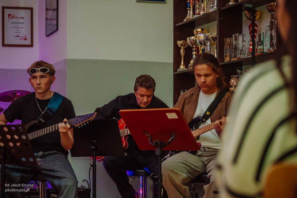 W czwartek, 9 października korytarz szkolny naszego liceum zamienił się w prawdziwą stację muzycznej wyprawy. Uczniowie, nauczyciele oraz przybyli goście mieli okazję uczestniczyć w wyjątkowym koncercie zatytułowanym „Podróż”, który przeniósł nas w różne zakątki emocji, stylów muzycznych i artystycznych inspiracji.