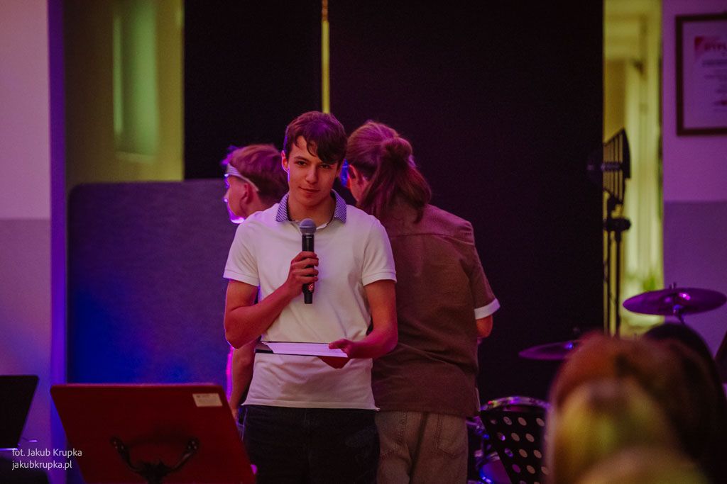 Na scenie wystąpili utalentowani uczniowie naszej szkoły, którzy przygotowali niezwykle różnorodny i poruszający program. Sercem wydarzenia był zespół muzyczny, w którego skład weszli: licealiści Janek Lipski, Andrzej Szczygieł, Maciej Nieradka, Hubert Wiącek i pan Adam Małecki. Ich występ nadał koncertowi energii i spójności, tworząc solidne muzyczne tło dla wokalistów Bogusława Dobosza i Mai Ulatowskiej.