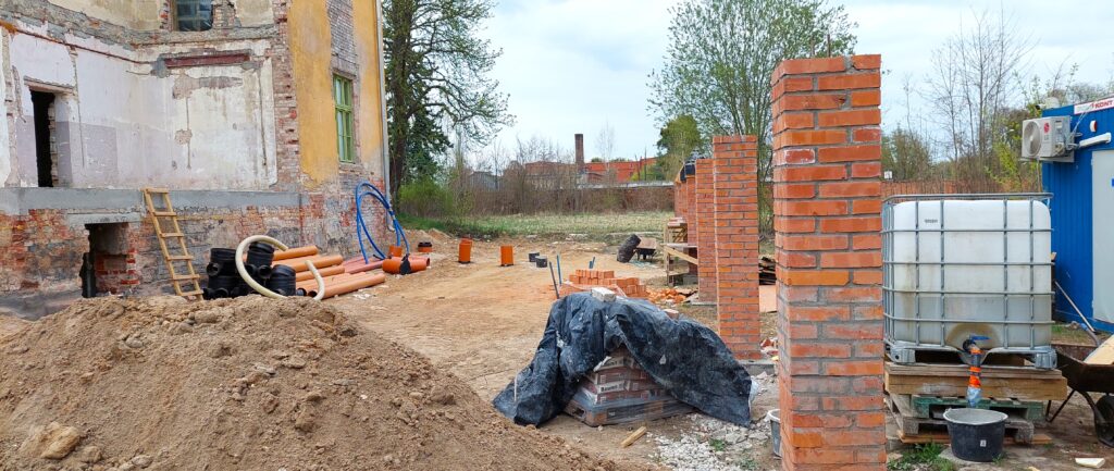 Postępuje trudny remont zabytkowej Willi Victoriusa przy ul. Armii Krajowej w Grudziądzu. Powstaje ogrodzenie, prowadzone są specjalistyczne roboty wewnątrz obiektu