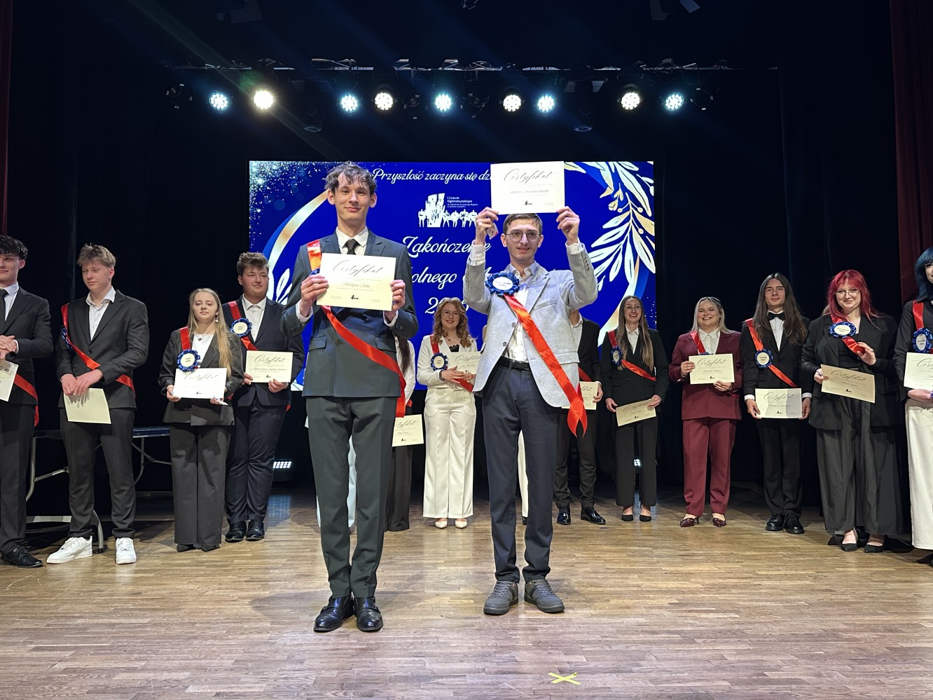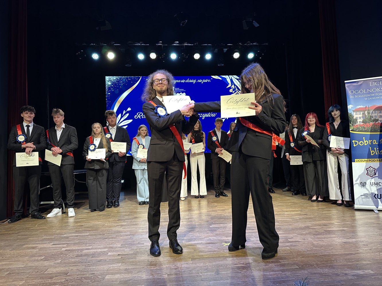 Uroczystość przygotowali uczniowie klasy 3D. Nie zabrakło także wydarzenia, które stało się już naszą kilkuletnią tradycją – młodzież przyznała wyróżnienia maturzystom, którzy w szczególny sposób pozostaną w naszej pamięci. Wśród wielu tytułów znalazły się między innymi takie, jak: Influencer roku, Królowa parkietu, Przyjaciel roku, Wolontariusz roku i wiele innych. Wielu spośród uczniów klas maturalnych nie mogło ukryć wzruszenia. Wszyscy zdali sobie sprawę z tego, iż piękny, czteroletni okres nauki w I Liceum Ogólnokształcącym im. Bohaterów Porytowego Wzgórza w Janowie Lubelskim dobiegł końca.