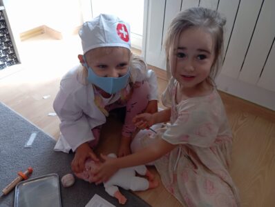 Projekt o bezpieczeństwie dobiegł końca!Nasze przedszkolaki poznawały tajniki ratownictwa medycznego – dowiedziały się, co znajduje się w apteczce, jak ułożyć poszkodowaną osobę w pozycji bocznej ustalonej, dlaczego pasy i światła na drodze są tak ważne.