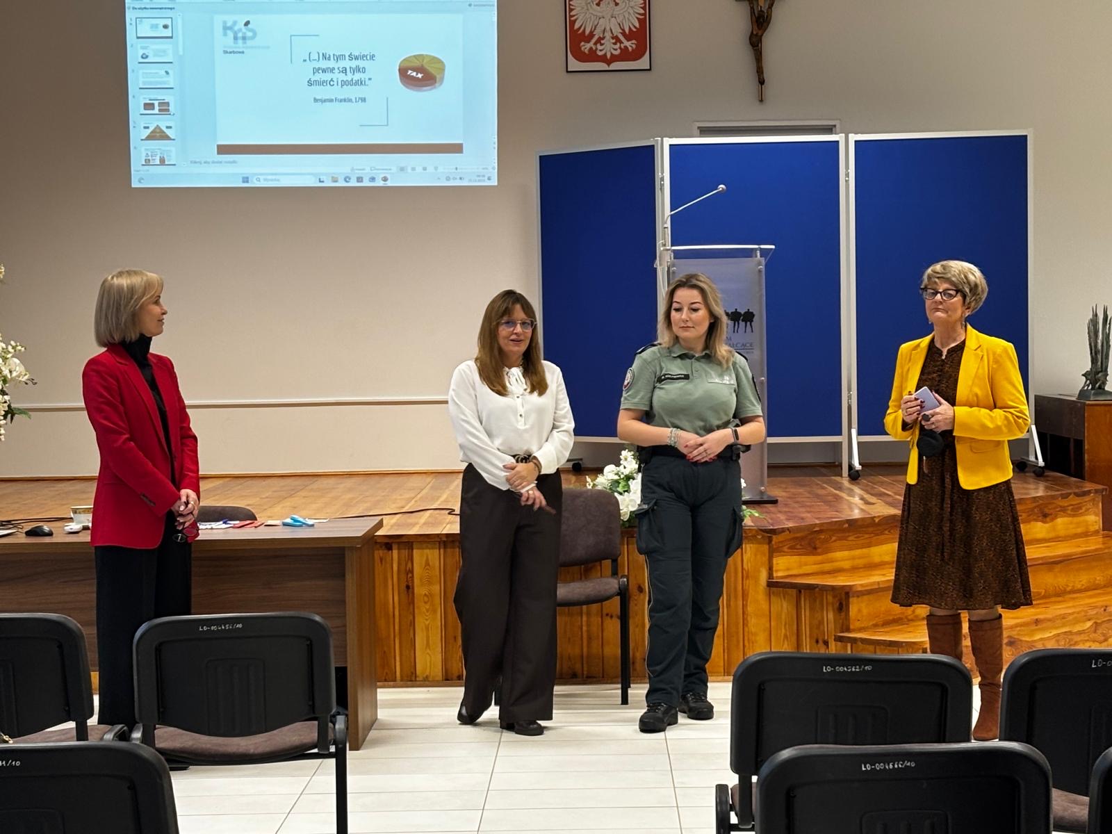 W trakcie spotkania omówiono także prawa i obowiązki podatnika, w tym prawo do informacji, zwrotu nadpłaty i ochrony danych oraz obowiązek terminowego rozliczania podatków, przechowywania dokumentów i współpracy z organami skarbowymi.