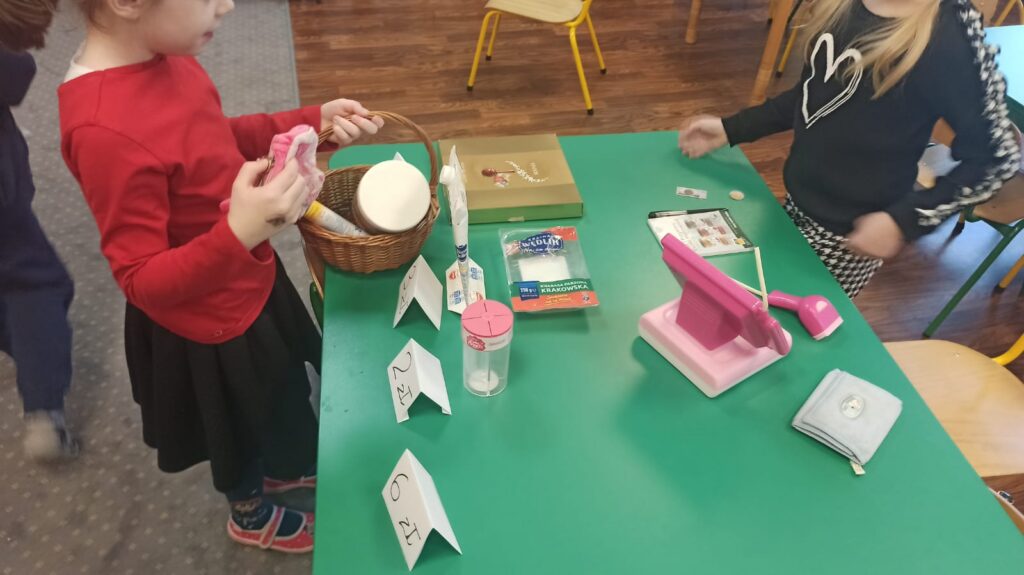 Dzieci z grupy A6 „Krasnoludki” aktywnie uczestniczą w projekcie ABC Ekonomii. Podczas zajęć zdobywają wiedzę na temat tego, czym są pieniądze, do czego służą oraz jak rozsądnie robić zakupy. Przedszkolaki z dużym zaangażowaniem brały udział w zabawach tematycznych – wcielały się w role sprzedawców i klientów, bawiąc się w sklep. Dzięki temu w praktyczny i radosny sposób uczyły się podstaw gospodarowania pieniędzmi oraz podejmowania codziennych decyzji zakupowych.