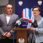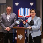 08.12.2025. Kielce. Konferencja na temat reformy szkolnictwa. Na zdjęciu (od lewej): Piotr Łojek – świętokrzyski kurator oświaty, Katarzyna Lubnauer – wiceminister edukacji. / Fot. Wiktor Taszłow – Radio Kielce.Drugim tematem dzisiejszego spotkania z dyrektorami i nauczycielami były małe szkoły. Resort edukacji przygotowuje ustawę, która ma ułatwić reorganizację placówek, tak by nie trzeba było ich zamykać. Piotr Łojek, świętokrzyski kurator oświaty mówi, iż nowe przepisy są bardzo potrzebne.