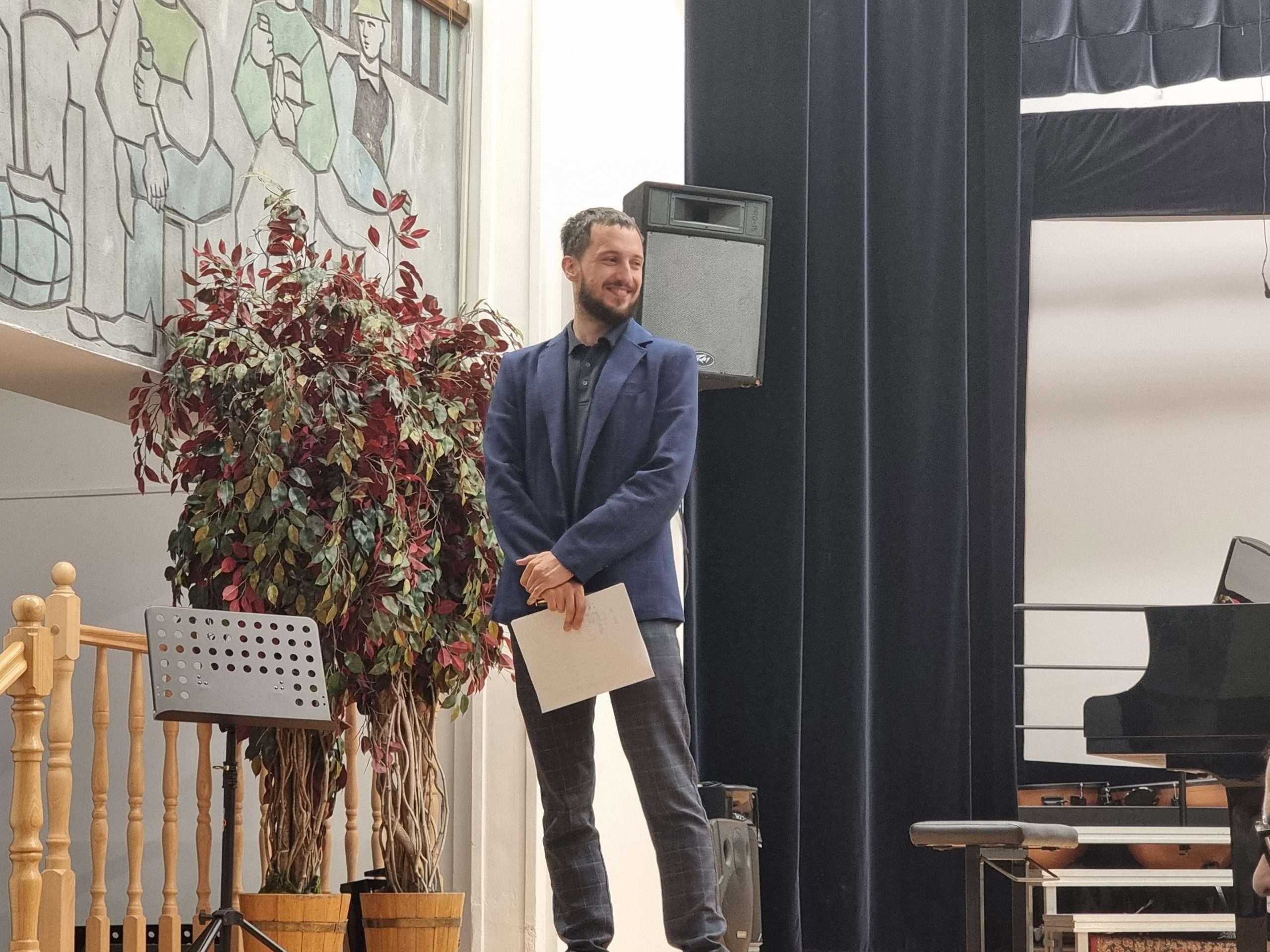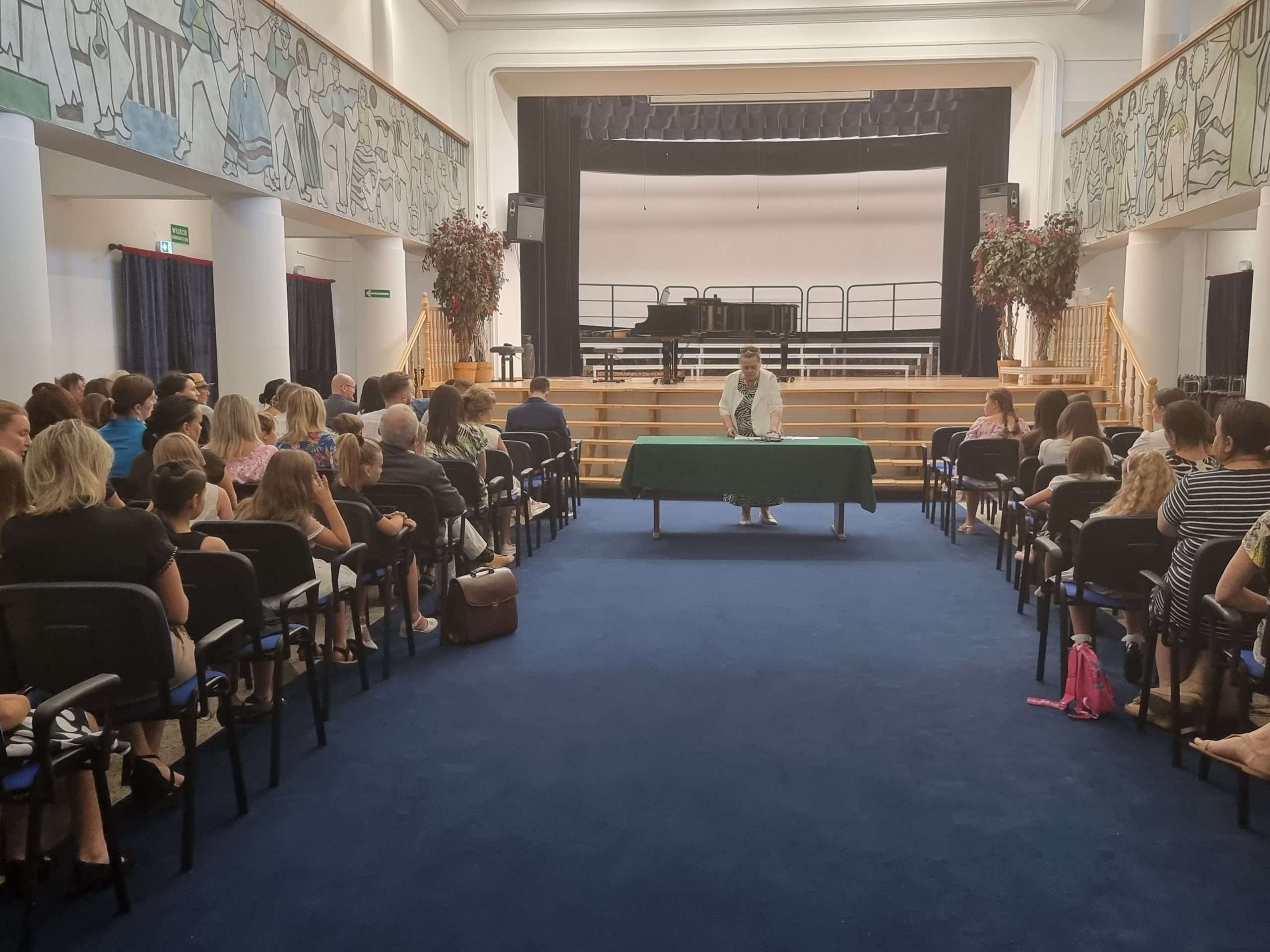 Uroczystość rozpoczęła się muzycznym akcentem. Wystąpiła Aleksandra Traczyk, nauczycielka klasy skrzypiec, która zagrała Kaprys polski Grażyny Bacewicz, a następnie absolwentka Szkoły, w tej chwili studeńka akademii muzycznej Klaudia Sasuła, która zagrała pierwszą część Koncertu wiolonczele Józefa Haydna C-dur (akompaniował Robert Rosiek).