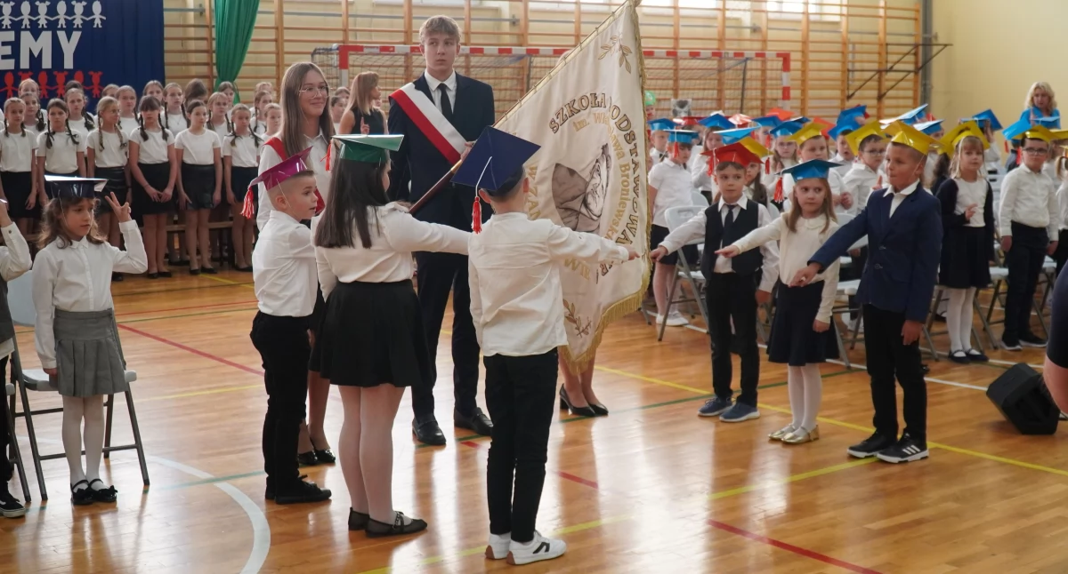 Po pierwszym miesiącu nauki w szkołach podstawowych najmłodsi uczniowie zostają oficjalnie przyjęci w poczet społeczności szkolnej. Dzisiaj w Szkole Podstawowej nr 4 w Zambrowie odbyło się ślubowanie pierwszoklasistów połączone z pasowaniem na ucznia. Uroczyste ślubowanie pierwszoklasistów połączone z pasowaniem na ucznia odbyło się dzisiaj, 1 października w Szkole Podstawowej nr 4 w Zambrowie. W poczet społeczności szkolnej oficjalnie przyjętych zostało 6 klas pierwszych. Wydarzenie rozpoczęło się wspólnym odśpiewaniem hymnu narodowego. Następnie każda z klas wykonała przed zgromadzonymi rodzicami przygotowane specjalnie na dzisiaj wierszyki. Po krótkiej części artystycznej, pierwszoklasiści złożyli uroczyste przyrzeczenie na sztandar szkoły. Obiecali pilnie się uczyć i godnie reprezentować szkołę. Po zakończonym ślubowaniu dyrektor SP4 Ryszard Świderski, dotykając olbrzymim ołówkiem ramienia każdego z uczniów, symbolicznie przyjął ich do grona społeczności szkolnej. Wszystkie dzieci otrzymały pamiątkowe dyplomy, aby zapamiętać ten szczególny dla nich dzień. Dzisiejsza uroczystość zakończyła się zdjęciami grupowymi klas.