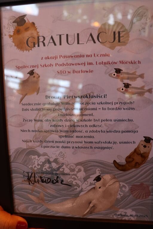10 października w Społecznej Szkole Podstawowej im. Lotników Morskich STO w Darłowie odbyła się wyjątkowa uroczystość – ślubowanie uczniów klas pierwszych.