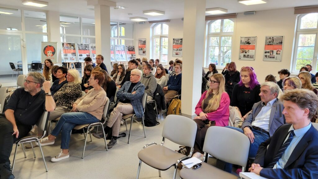 Wielowątkową dyskusję poprowadził profesor Jerzy Madejski z Instytutu Literatury i Nowych Mediów. Wspomnienia Anny Frajlich podczas całego spotkania przenikały się z jej twórczością. Poetka, przywołując minione zdarzenia, z pamięci recytowała własne wiersze. Profesor Sławomir Jacek Żurek opowiadał zaś o interesujących aspektach pracy nad tomem „Szklany sufit języka”, podkreślając: „historia literatury to życie konkretnych ludzi”. Podczas wydarzenia wiersze Anny Frajlich przeczytał Adam Opatowicz, dyrektor Teatru Polskiego w Szczecinie.