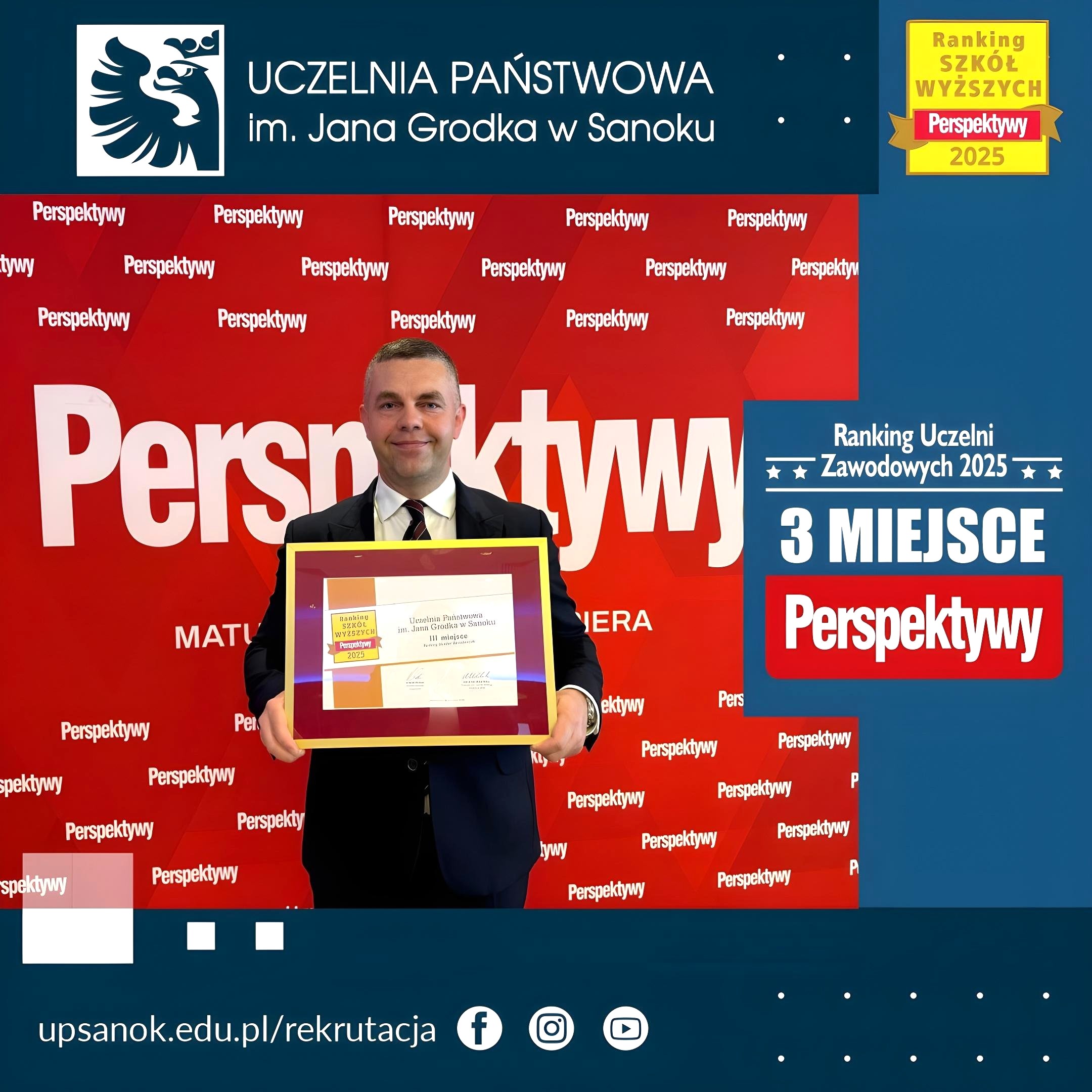 Z dumą informujemy, iż Uczelnia Państwowa im. Jana Grodka w Sanoku zajęła 3. miejsce wśród wszystkich uczelni zawodowych w Polsce w Rankingu Perspektywy 2025!