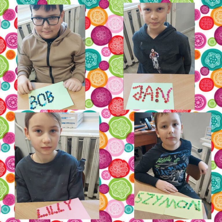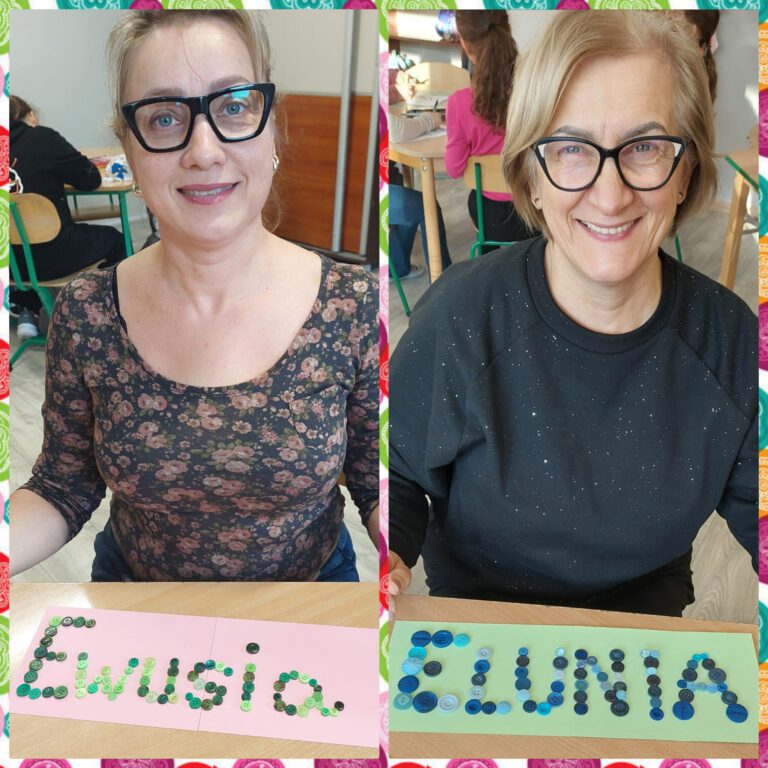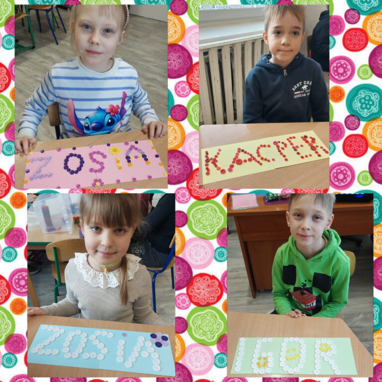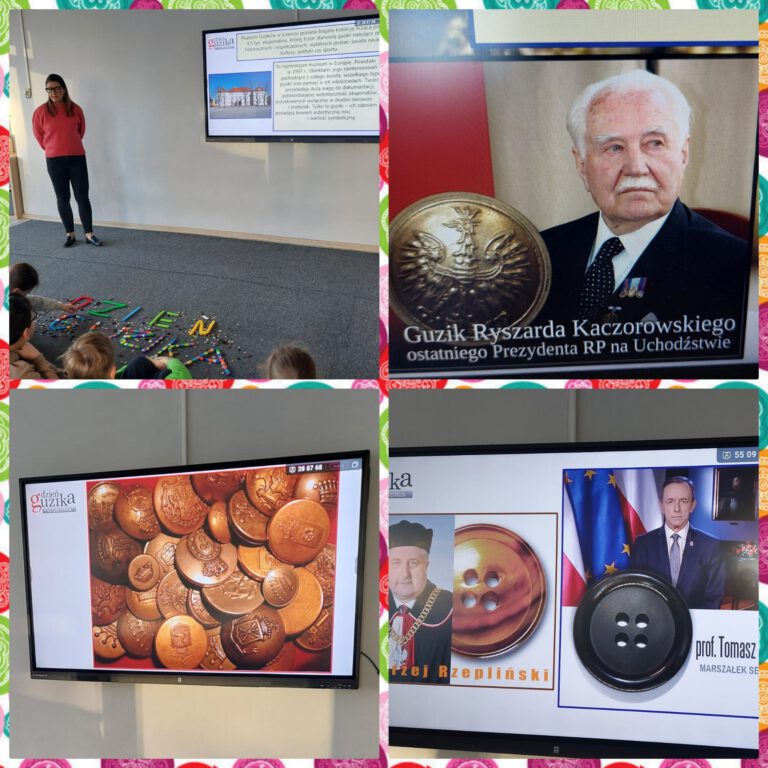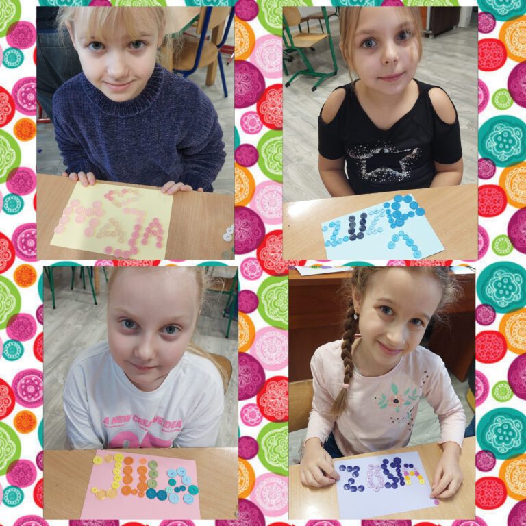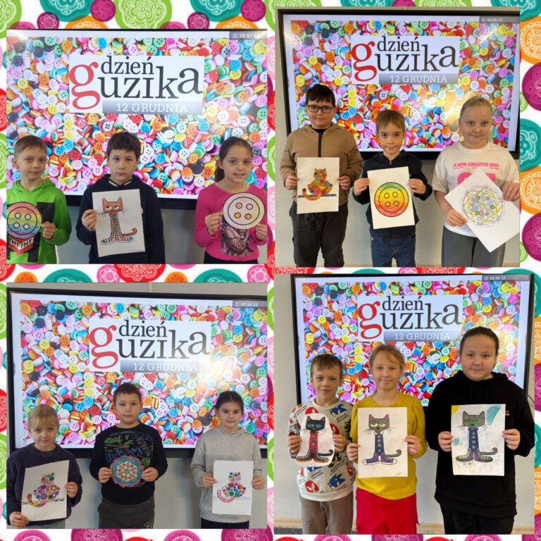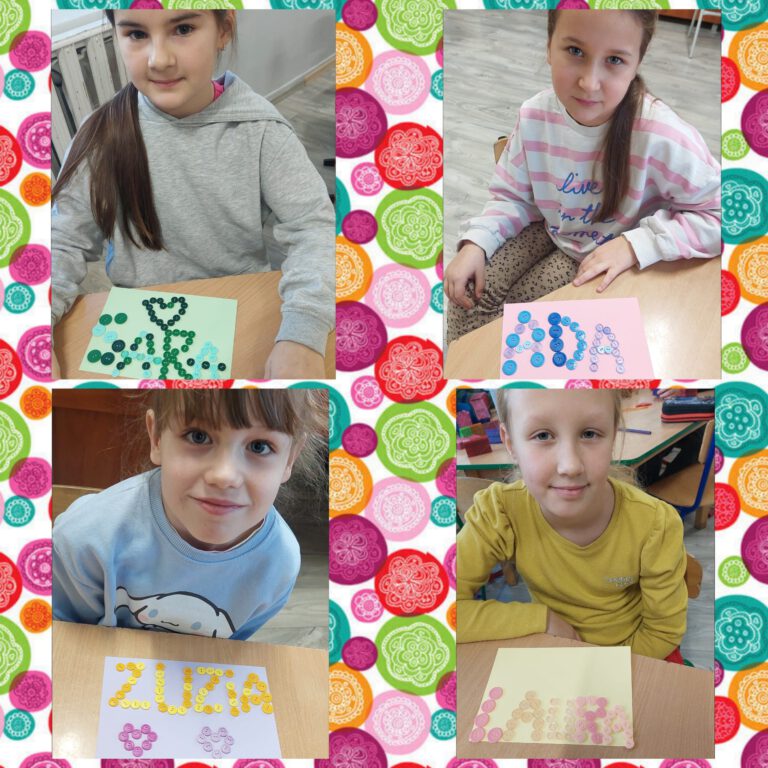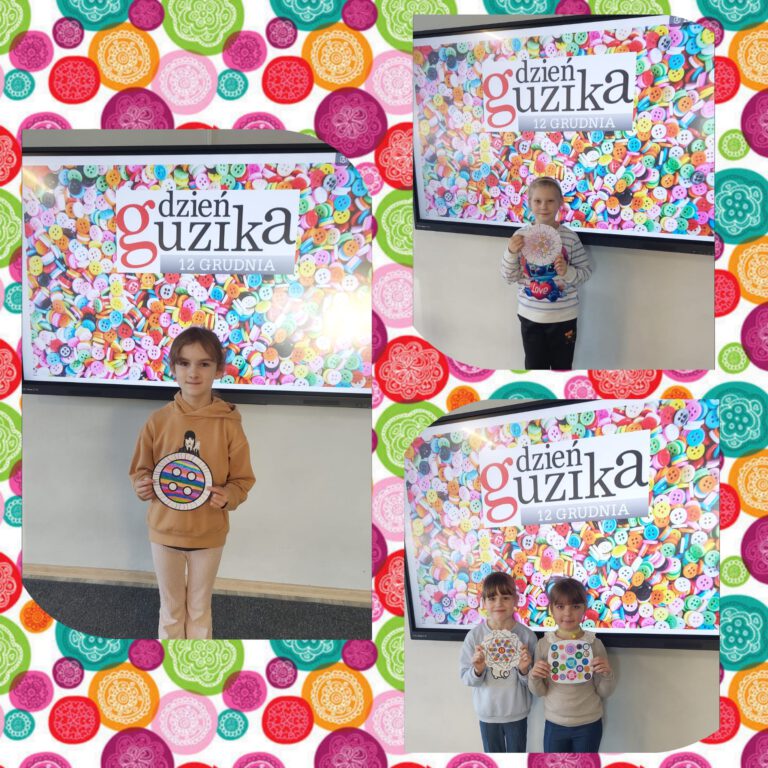 Podczas zajęć dzieci wysłuchały „historii” guzika, oglądnęły prezentację medialną o muzeum guzików w Łowiczu, kolorowały „guzikowe” malowanki oraz wspólnie bawiły się układając guzikowe imiona. Do wspólnej zabawy zapraszały i pracowników szkoły.