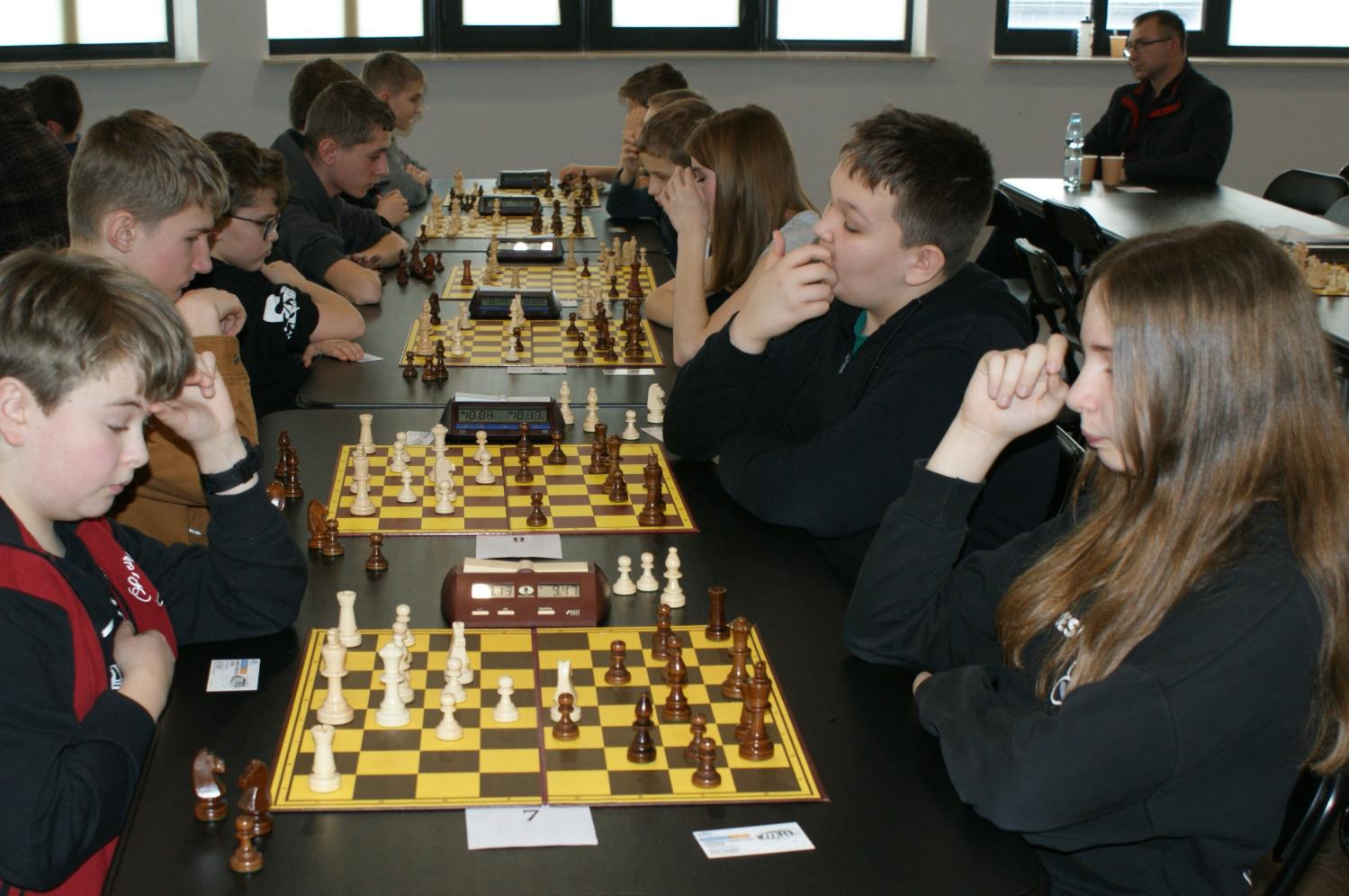 Ale przejdźmy do turnieju, który odbył się w niedzielę 22. lutego z okazji ferii zimowych dla dzieci i młodzieży szkolnej pod patronatem Bożeny Czajkowskiej – Przewodniczącej Rady Miejskiej w Janowie Lubelskim. Udział wzięło 29. uczestników, głównie z powiatu janowskiego. Rozegrano 7 rund z tempem 10 minut dla wszystkich zawodnika plus 5 sekund za każdy wykonany ruch. Wiekowo, najwięcej było chłopców w wieku od 11 do 14 lat – 14 szachistów. W grupie powyżej 15 lat – 6, do 10 lat – czterech. Natomiast dziewcząt w wieku 11 – 14 lat – 4 szachistki i jedna 10-letnia juniorka z Węglisk – Milena Kamińska.