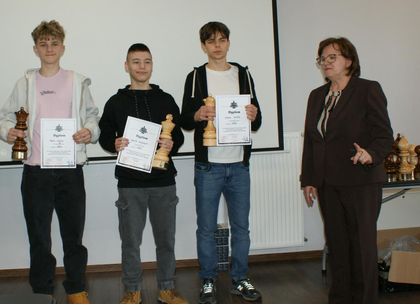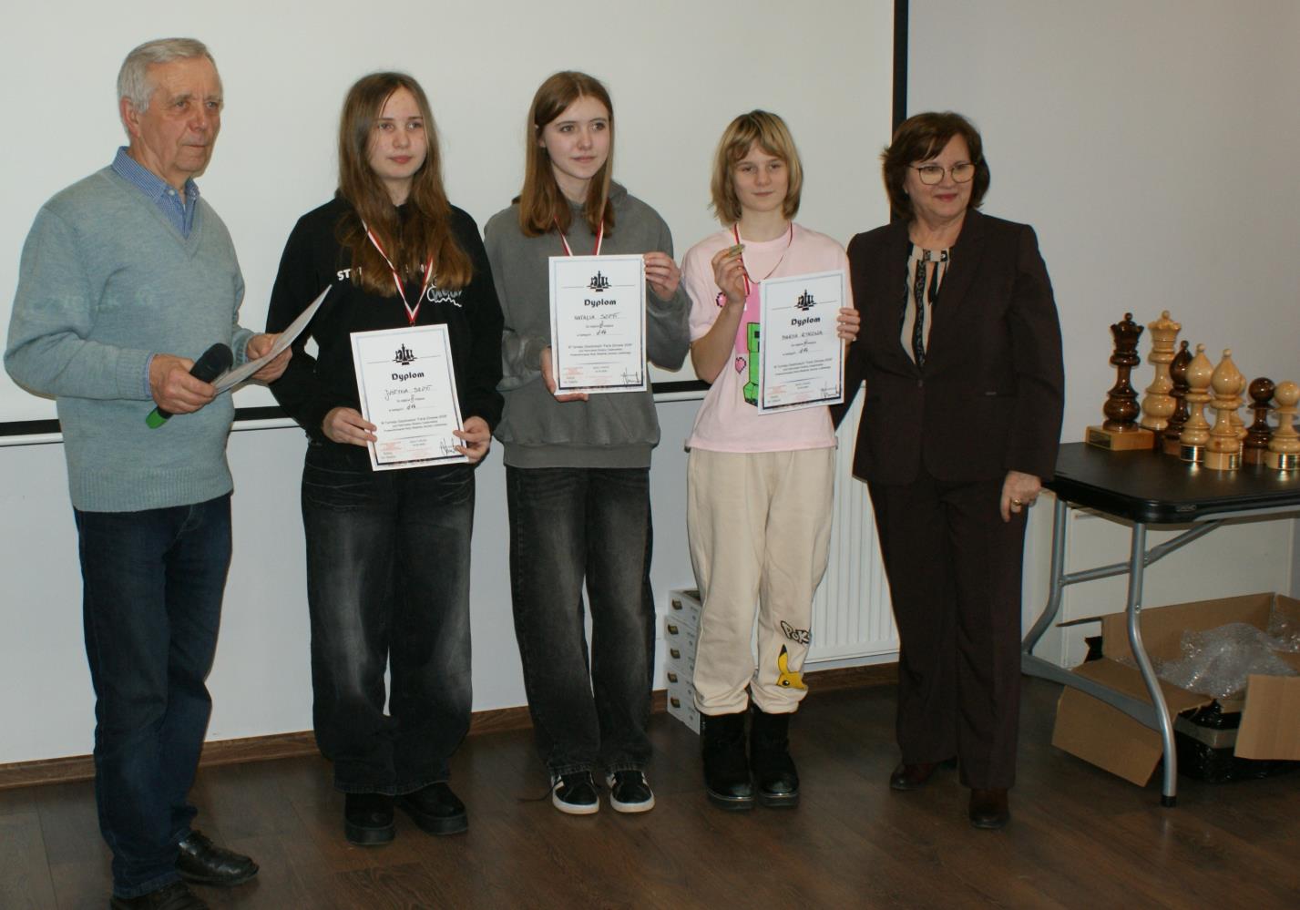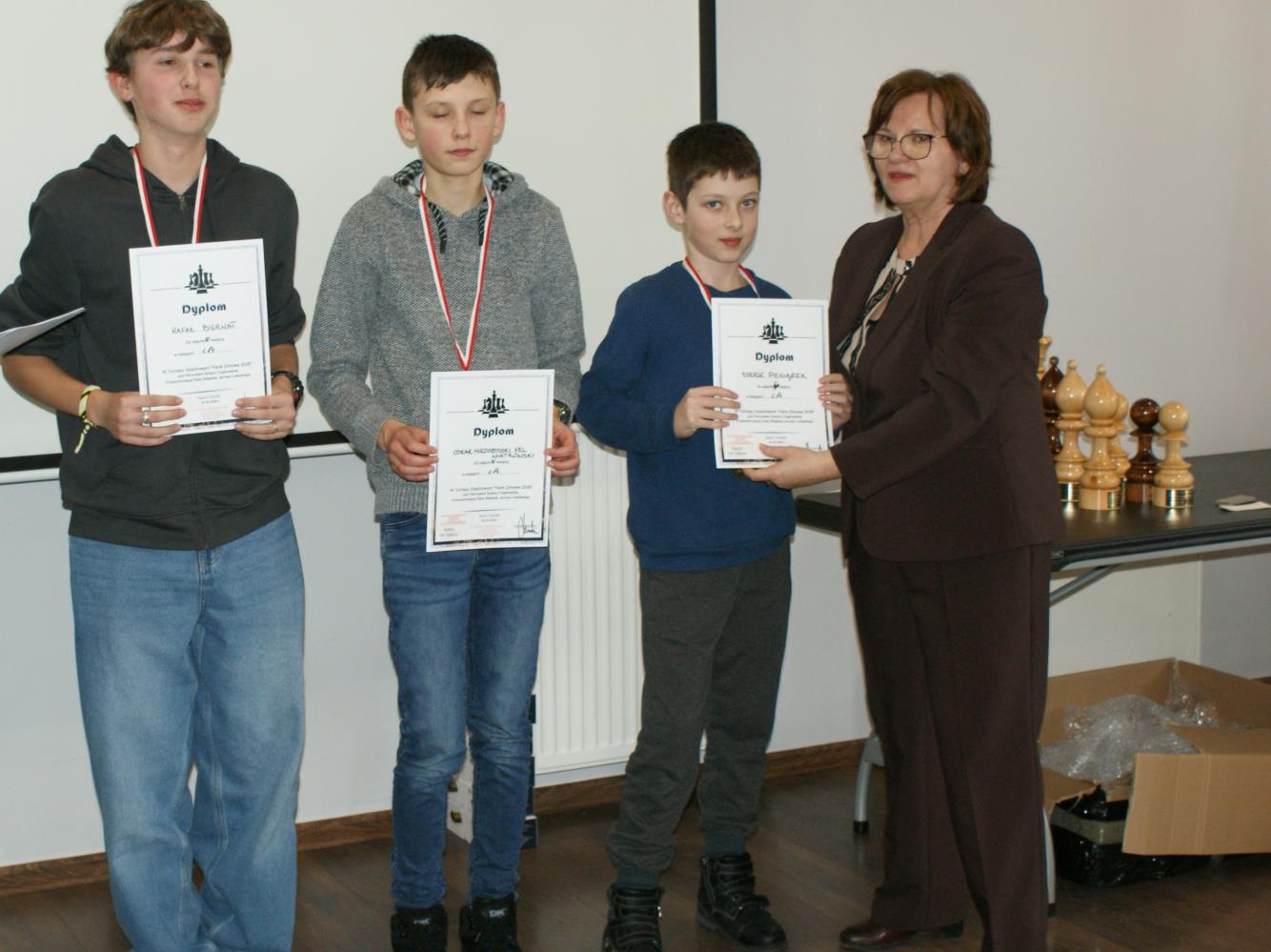 Zwycięzcy w poszczególnych kategoriach otrzymali nagrody w postaci figur szachowych jako puchary. Pozostali – pamiątkowe medale. Dyplomy otrzymali wszyscy zawodnicy.