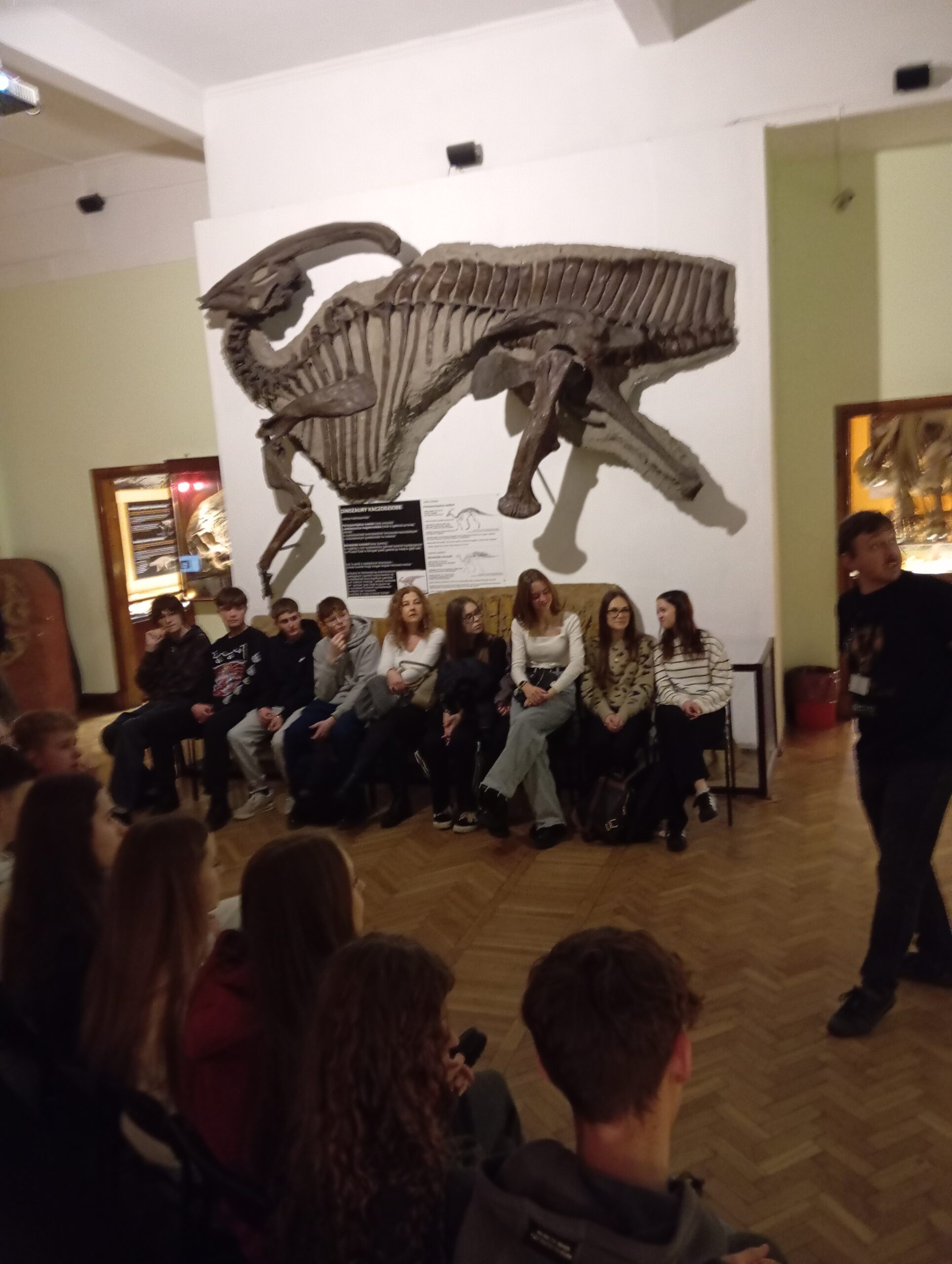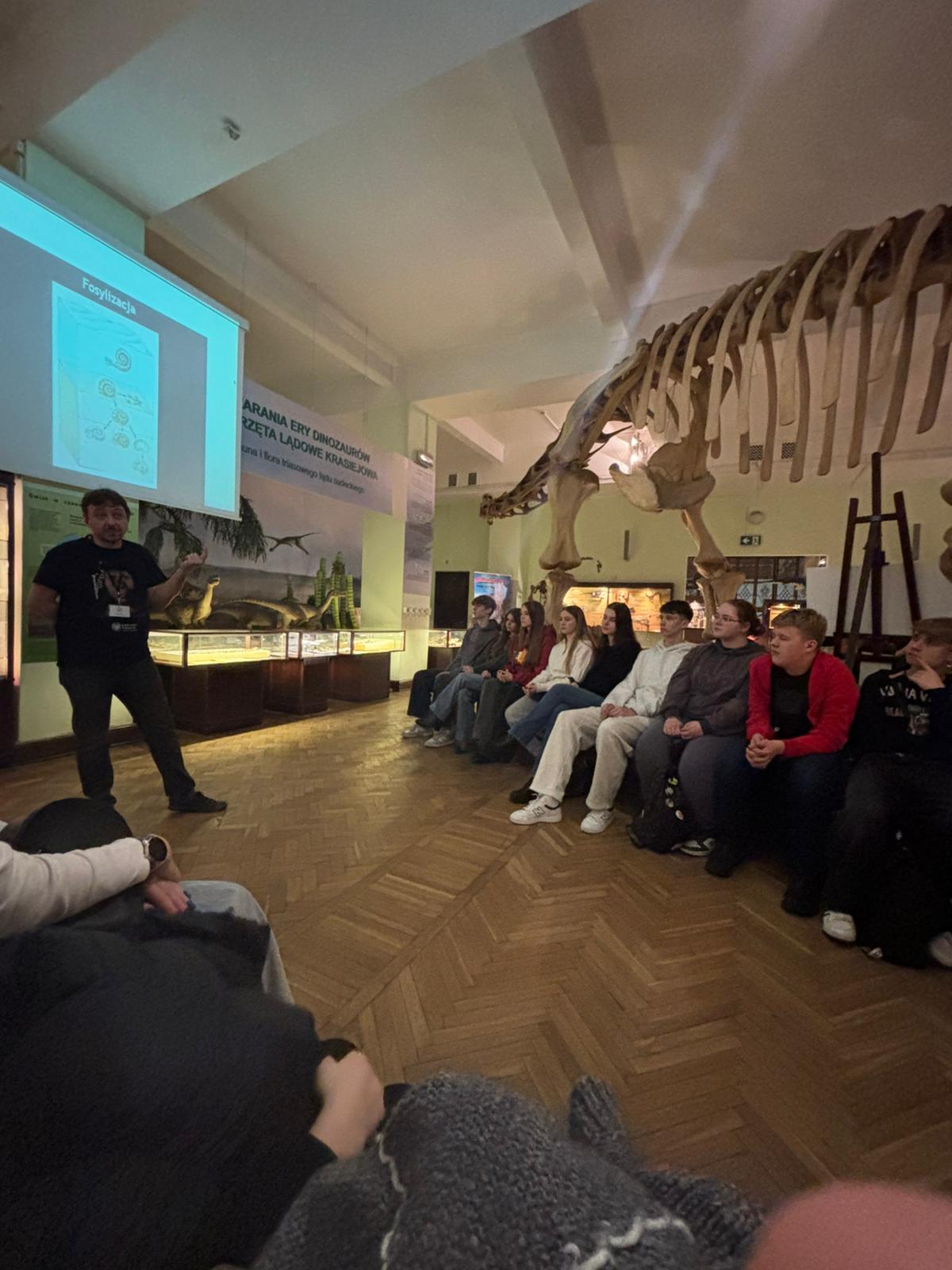 Kolejnym punktem był udział w lekcji muzealnej zatytułowanej „Antropogeneza” w Muzeum Ewolucji, którą zaprezentował dr paleontologii Krzysztof Owocki z Instytutu Paleobiologii PAN. Zajęcia składały się z wykładu połączonego z pokazem slajdów, dyskusji i zwiedzania muzeum. Program lekcji obejmował również m.in. wstęp do teorii ewolucji, genezę ssaków i wpływ człowieka na środowisko.