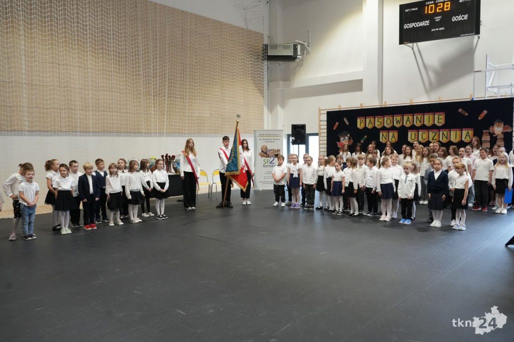 Po wypowiedzeniu słów przysięgi uczniowskiej wiceburmistrz Krzysztof Jasiński wraz z dyrektorem szkoły Jackiem Szmitem oraz wicedyrektorką Elżbietą Jakubowską symbolicznie pasowali dzieci na uczniów. Każdy z nich otrzymał również symboliczny upominek ufundowany przez Radę Rodziców.