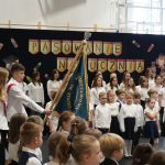 Po części artystycznej przyszła pora na uroczyste przekazanie nowego sztandaru szkoły. Później zebrani odśpiewali hymn szkoły, a następnie przystąpiono do uroczystego ślubowania pierwszoklasistów.