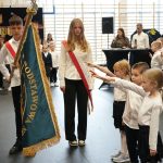 – „Przede wszystkim mamy ślubowanie uczniów klas pierwszych, którzy przyszli do nas 1 września i dzisiaj będą ślubować na sztandar szkoły – nowy sztandar, który w dniu dzisiejszym zostanie przekazany naszej placówce. Sztandar jest ufundowany przez Radę Rodziców i właśnie przedstawiciele Rady Rodziców w dniu dzisiejszym przekażą nam nowy sztandar. Sztandar poprzedni funkcjonował od roku 1970, więc łatwo licząc jest to ponad 55 lat. Myślę, iż ten sztandar równie długo będzie u nas w szkole funkcjonował i pełnił swoją rolę” – mówi dyrektor Jacek Szmit.