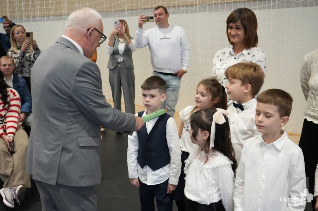 – „Dzisiejsze pasowanie to taki symboliczny akt wprowadzający dzieci do klasy pierwszej. Mam nadzieję, iż to równie ważna uroczystość wpisująca się w historię szkoły, iż dzisiaj nie tylko dzieci otrzymują poprzez ślubowanie wszystkie prawa, ale również i te obowiązki, które są ważne z punktu widzenia dzieci. Ja im życzę, żeby ten pierwszy etap edukacyjny spędziły na zabawie, na współpracy z wychowawcą, na współpracy ze swoimi rówieśnikami, żeby rozwijały swoje pasje, dobrze się bawiły, a przy okazji dobrze uczyły” – mówi Jasiński.