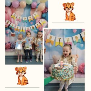 W naszej placówce świętujemy urodzinki Naszych przedszkolaków. W tym miesiącu w grupach- Tygryski jak również Liski odbyłą się uroczysta impreza. Były życzenia, wspólne śpiewanie „Sto lat”, uśmiechy, zabawa i słodki poczęstunek. To był radosny i wyjątkowy dzień!