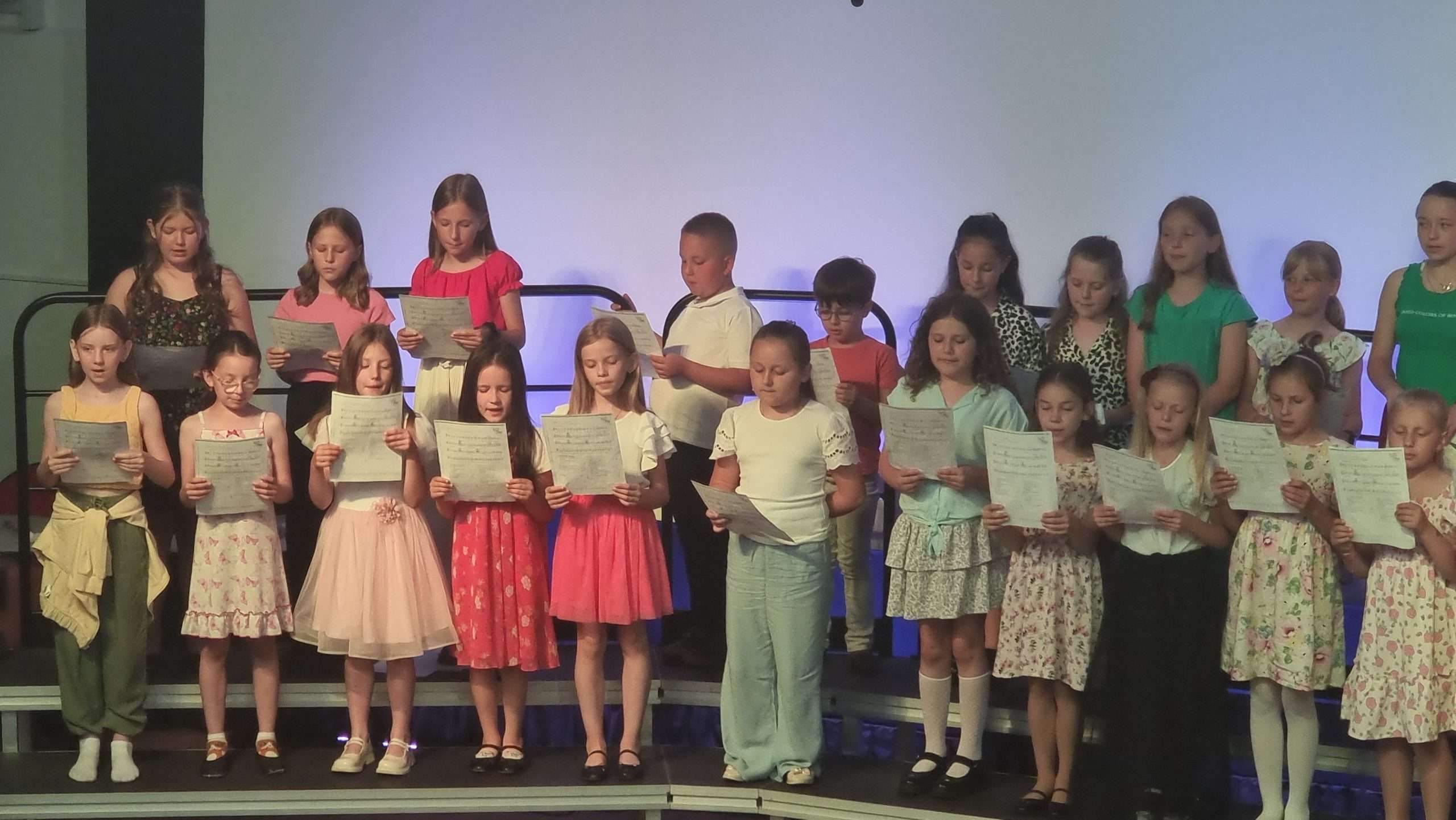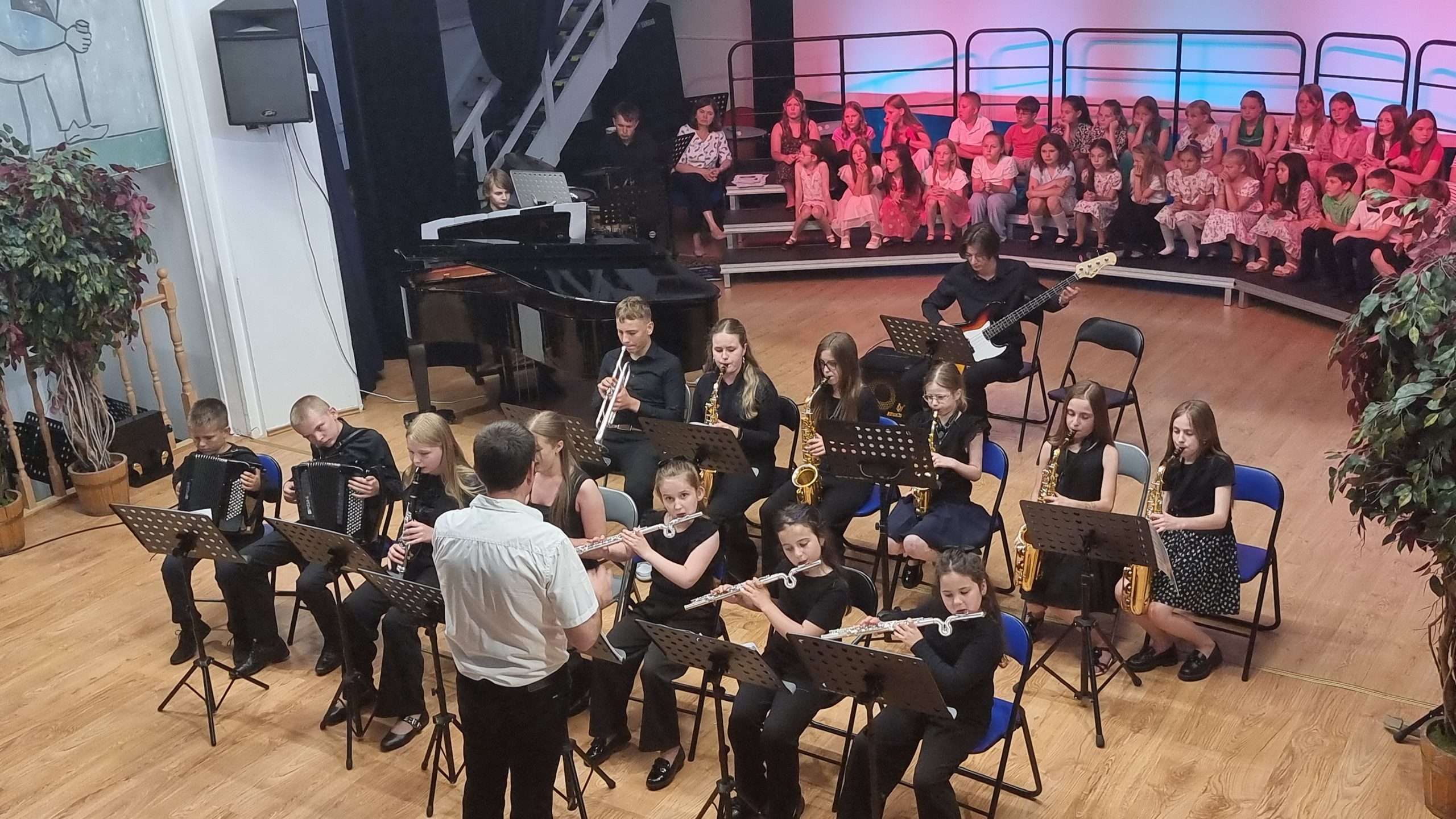 Na zakończenie roku szkolnego uczniowie Społecznej Publicznej Szkoły Muzycznej w Tymbarku „koncertowo” zakończyli rok nauki. Głównym tematem dzisiejszego „Wakacyjnego Koncertu” „prowadził” był taniec. Wystąpili uczestnicy Akademii Tańca, soliści, zespoły dęte, szkolny chór, Big Band oraz szkolna orkiestra z solistką Julią Ślusarczyk.