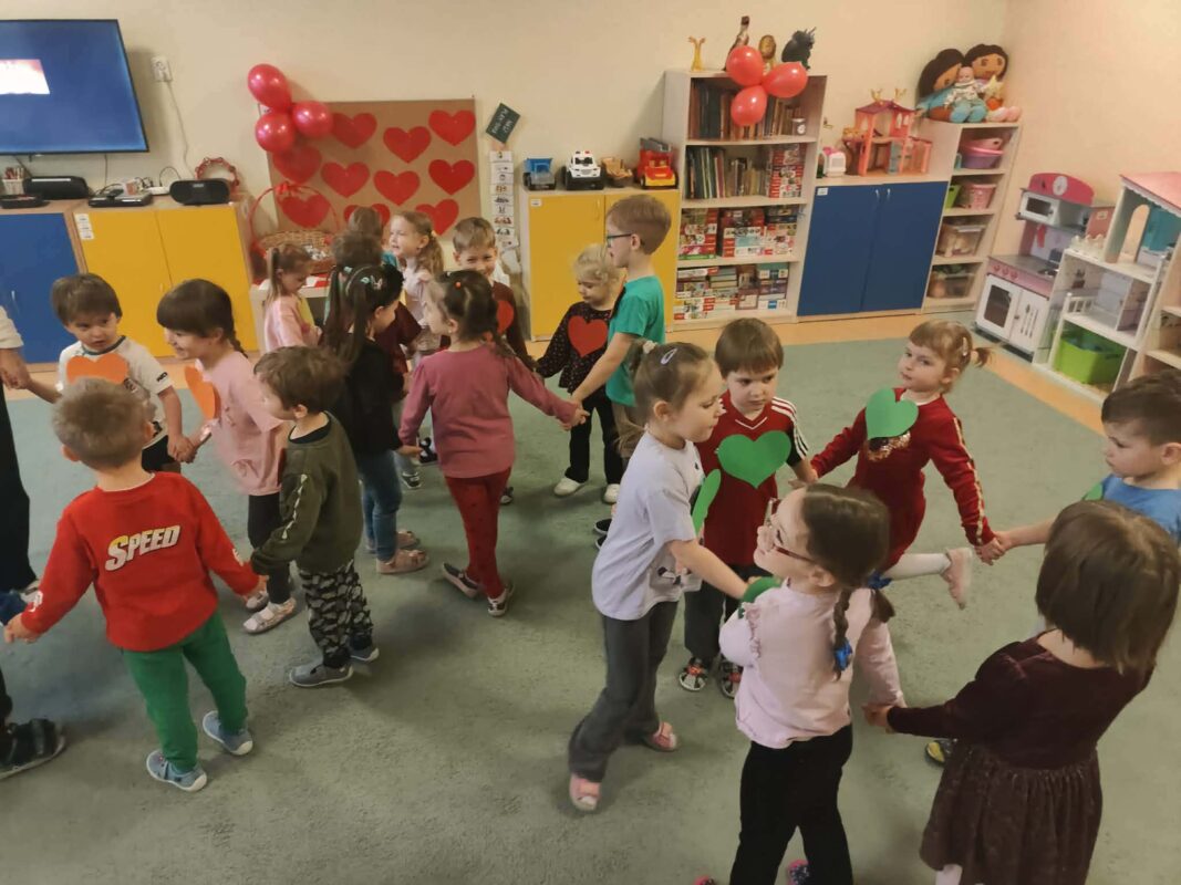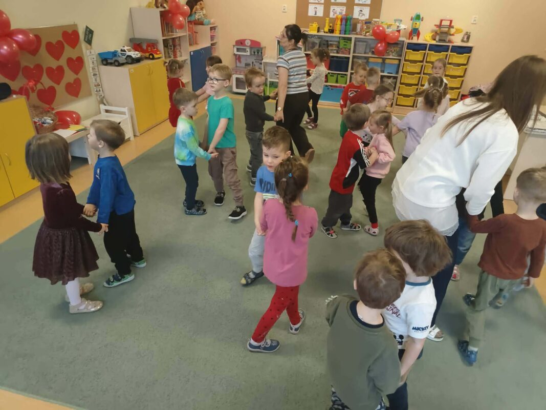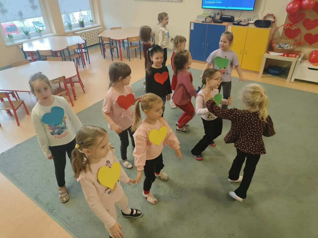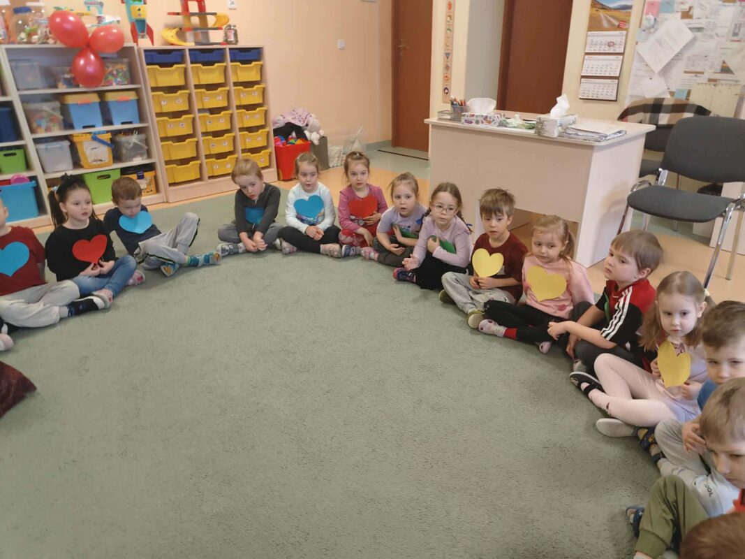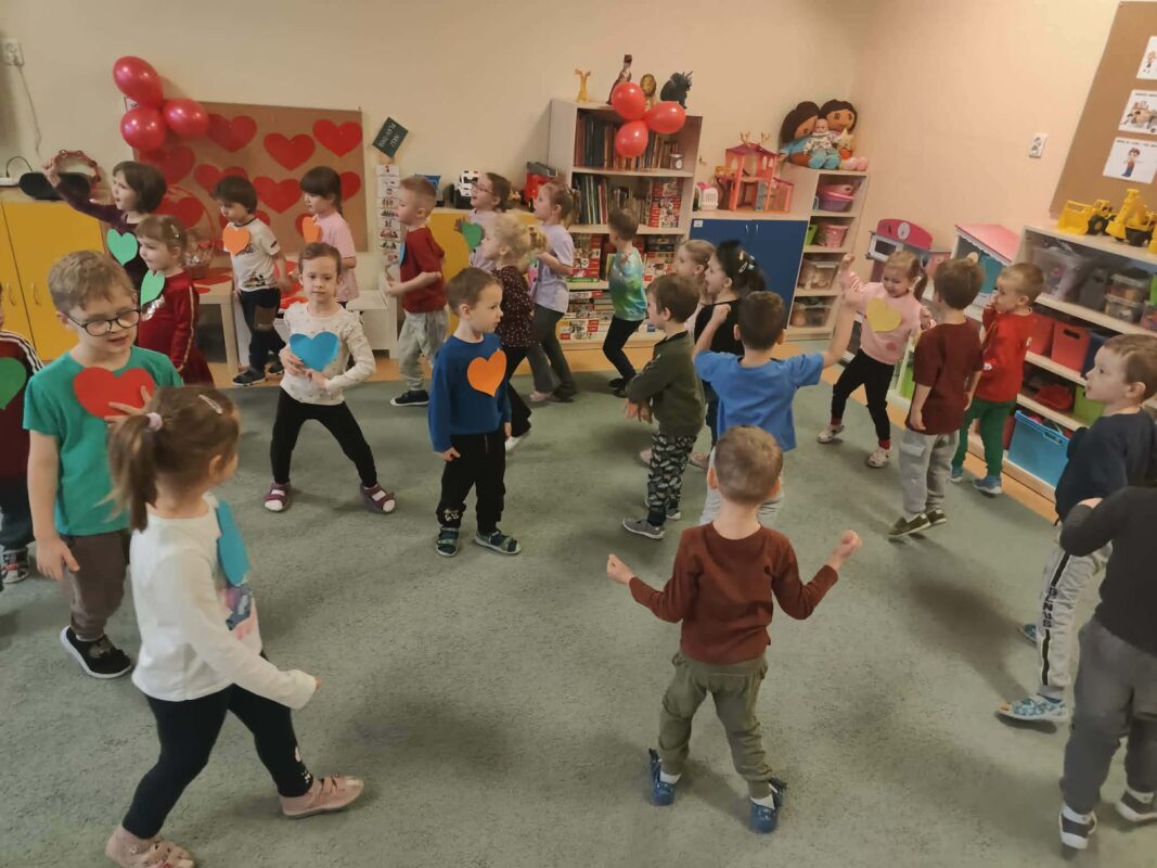 Z okazji Walentynek odbyło się spotkanie integracyjne grup Żabek i Biedronek. Dzieci wspólnie obejrzały film edukacyjny o przyjaźni i okazywaniu uczuć. Następnie brały udział w zabawach z serduszkami, które sprawiły im dużo radości. Spotkanie przebiegło w miłej, serdecznej atmosferze.