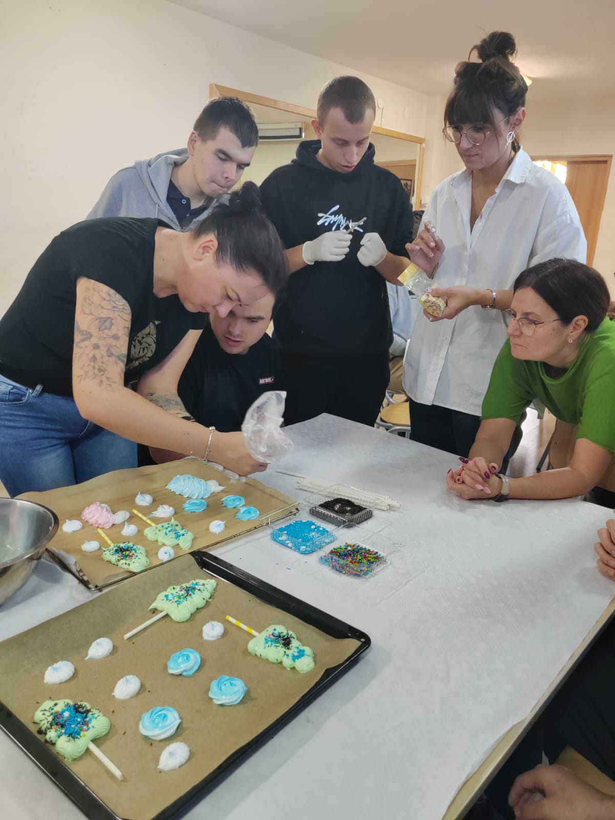 W szkole przysposabiającej do pracy 11 grudnia odbyły się wyjątkowe warsztaty kulinarne, które poprowadziła mama jednej z uczennic – pani Joanna Marciniak. Zajęcia poświęcone były przygotowaniu świątecznych lizaków bezowych. Podczas spotkania uczniowie pracowali w radosnej atmosferze. Wspólnie tworzyli masę bezową, formowali lizaki w kształty choinek oraz ozdabiali je kolorowymi dodatkami. Zaangażowanie uczestników było duże, a cały proces sprawił im wiele satysfakcji. Na zakończenie uczniowie mieli możliwość skosztowania przygotowanych przez siebie lizaków oraz dodatkowych bezików. Warsztaty okazały się nie tylko smaczną, ale też twórczą i integrującą formą zajęć.