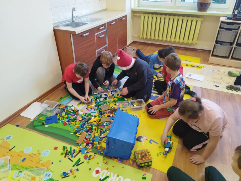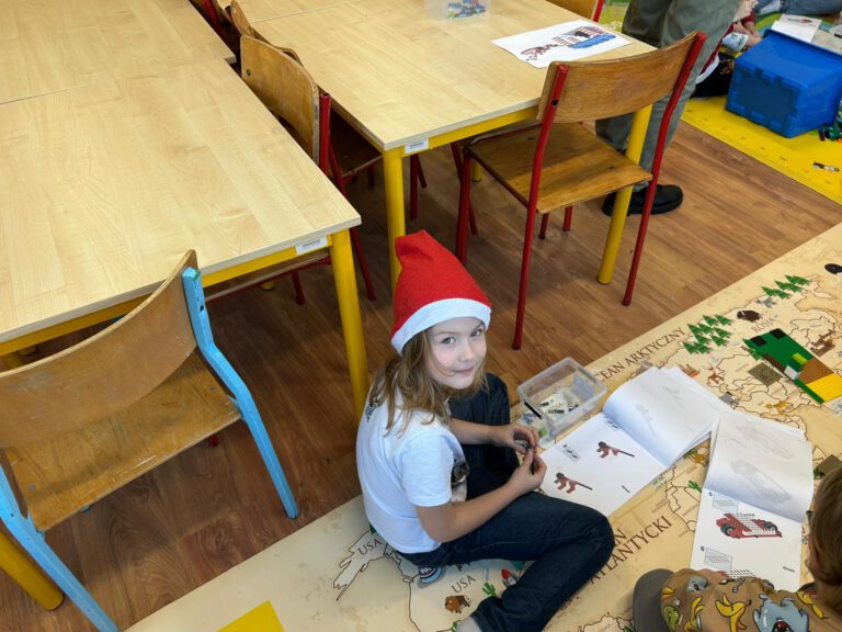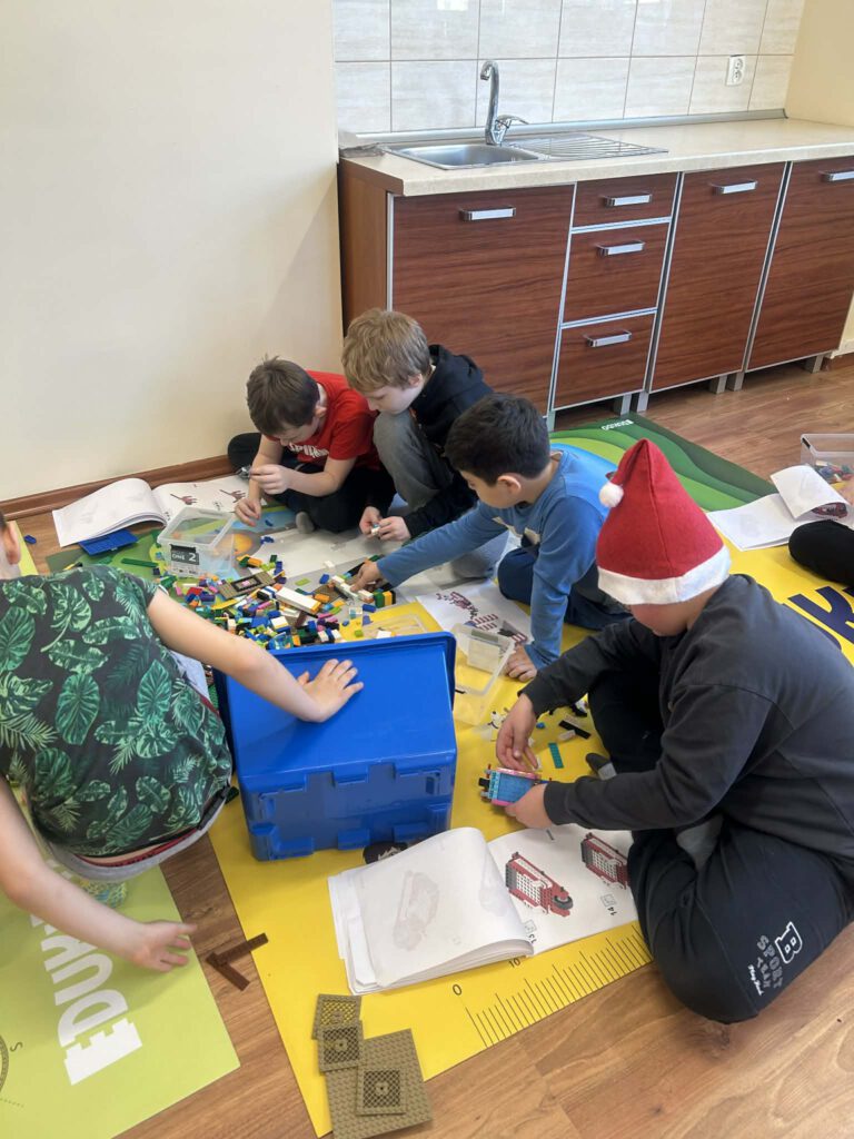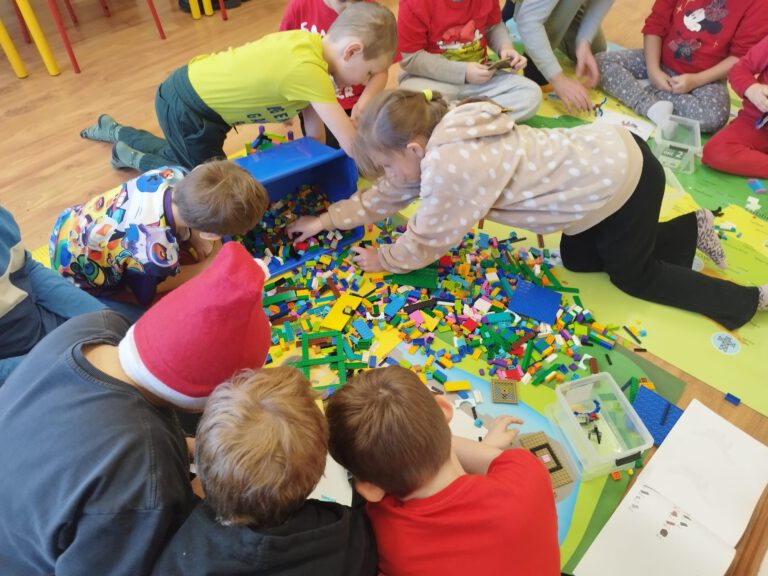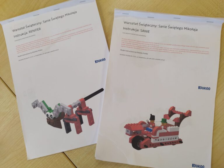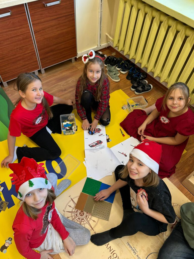 W poniedziałek, 8 grudnia 2026 roku, uczniowie klas 2b i 2d wzięli udział w wyjątkowych warsztatach konstrukcyjnych LEGO poświęconych tematowi Sań świętego Mikołaja. Podczas zajęć dzieci pracowały w zespołach, tworząc z klocków renifera oraz sanie, którymi miał podróżować Mikołaj. Uczniowie wykazali się ogromną kreatywnością i zaangażowaniem. Oprócz podstawowych konstrukcji powstała także stajnia, do której Mikołaj miał wjechać, zjeżdżając z rampy. Każda grupa mogła przetestować swoje modele, sprawdzając ich stabilność i funkcjonalność. Warsztaty przyniosły uczestnikom mnóstwo mikołajkowej radości, rozwijały wyobraźnię, uczyły współpracy, a także doskonaliły motorykę małą. Była to twórcza, inspirująca i pełna uśmiechu zabawa, która na długo pozostanie w pamięci uczniów.