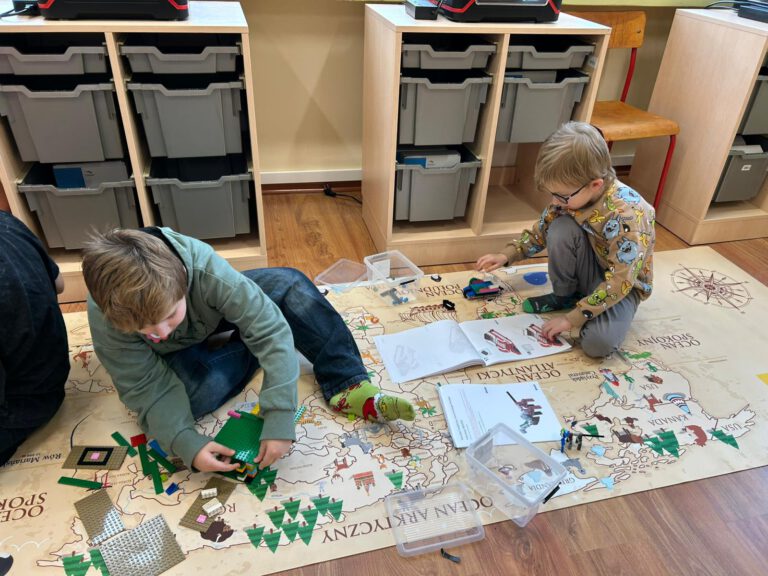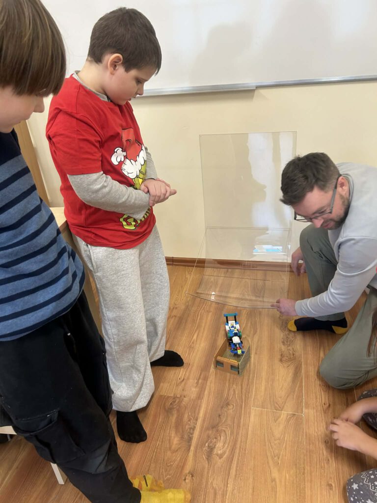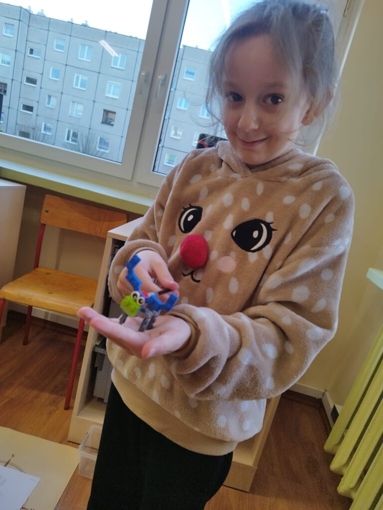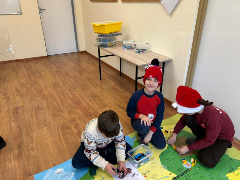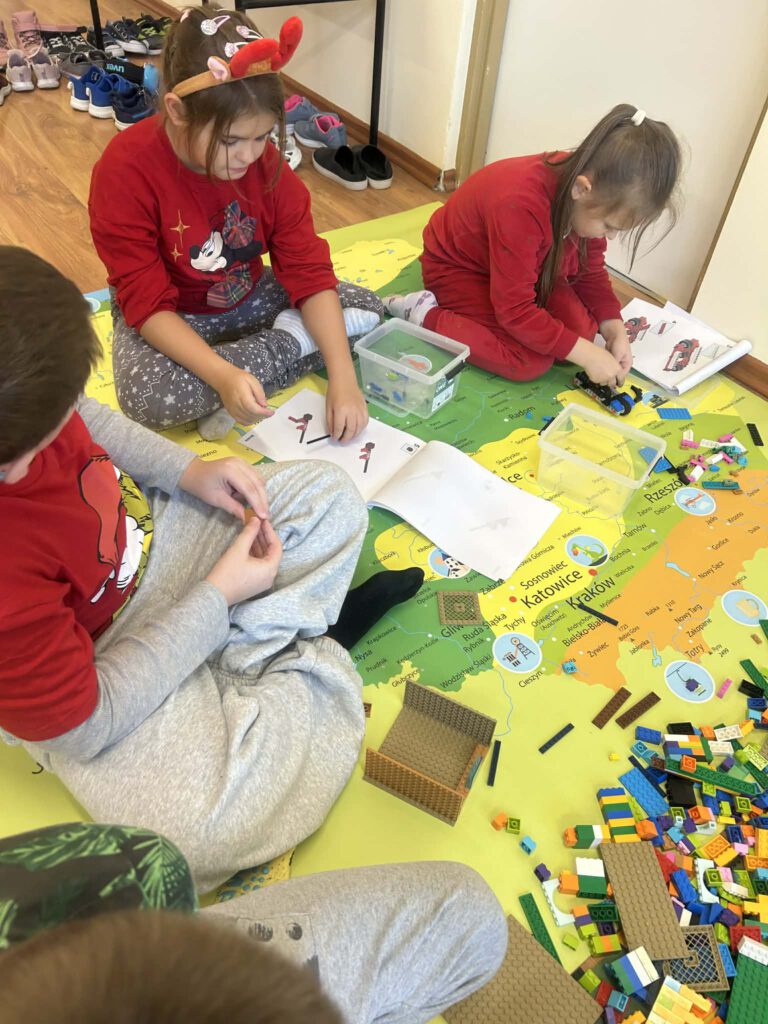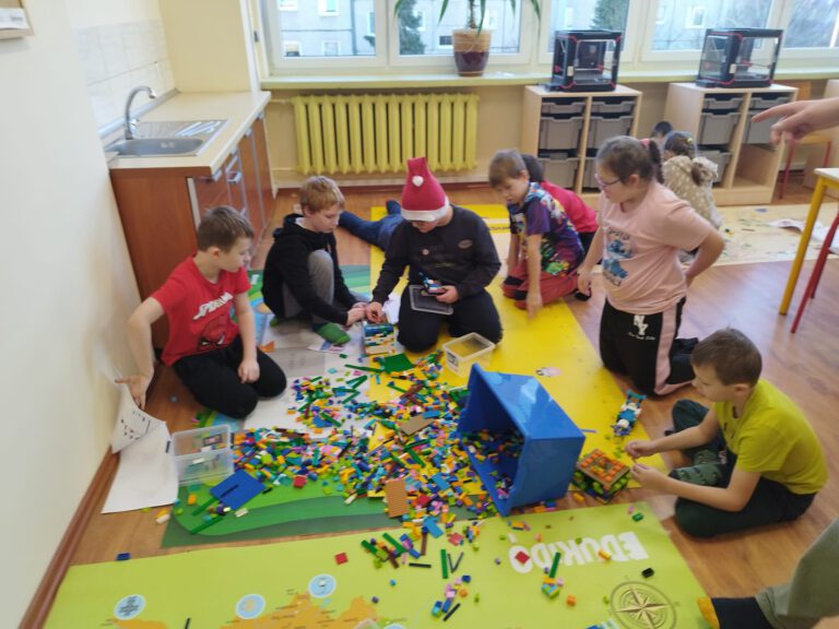 W poniedziałek, 8 grudnia 2026 roku, uczniowie klas 2b i 2d wzięli udział w wyjątkowych warsztatach konstrukcyjnych LEGO poświęconych tematowi Sań świętego Mikołaja. Podczas zajęć dzieci pracowały w zespołach, tworząc z klocków renifera oraz sanie, którymi miał podróżować Mikołaj. Uczniowie wykazali się ogromną kreatywnością i zaangażowaniem. Oprócz podstawowych konstrukcji powstała także stajnia, do której Mikołaj miał wjechać, zjeżdżając z rampy. Każda grupa mogła przetestować swoje modele, sprawdzając ich stabilność i funkcjonalność. Warsztaty przyniosły uczestnikom mnóstwo mikołajkowej radości, rozwijały wyobraźnię, uczyły współpracy, a także doskonaliły motorykę małą. Była to twórcza, inspirująca i pełna uśmiechu zabawa, która na długo pozostanie w pamięci uczniów.