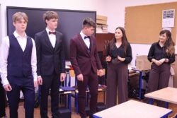 Uczniom zostały przedstawione podstawowe zasady ubioru na uroczyste okazje. Panowie z hetmańskiego grona zaprezentowali się w szykownych garniturach, do swoich stylizacji dobrali krawaty, muszki, buty i dodatki dopełniające całość. Podczas warsztatów omówiono również najczęstsze błędy w męskiej stylizacji – zbyt długie nogawki, źle dobrane kolory czy nieodpowiedni rozmiar marynarki. Nie zabrakło również części praktycznej, w której także dziewczyny uczyły się, jak poprawnie zawiązać krawat i pomóc swojemu partnerowi w wyborze garnituru.