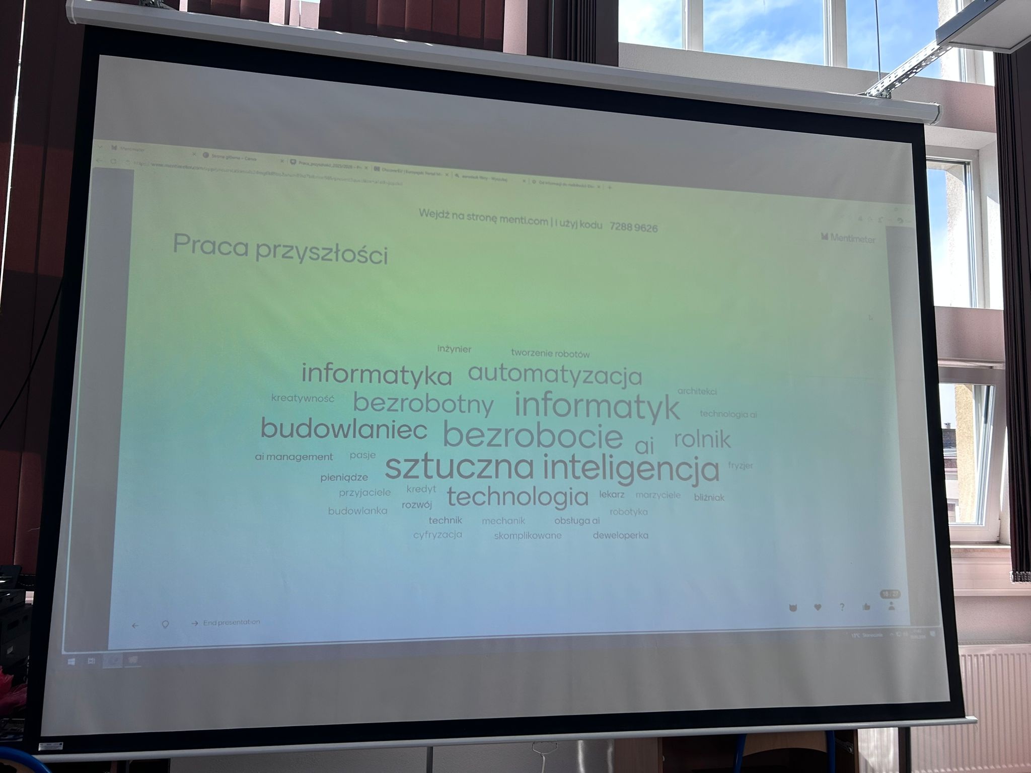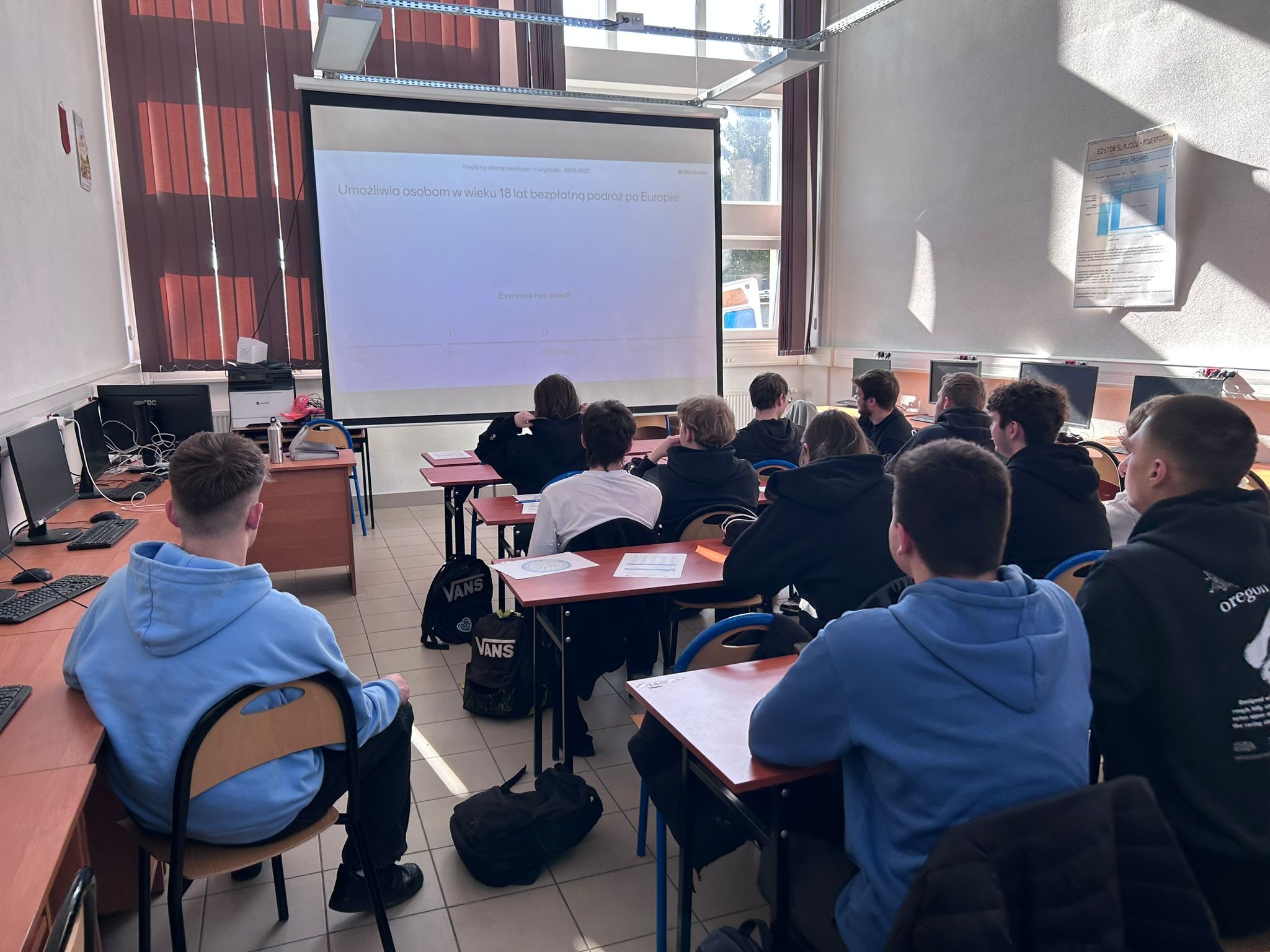 W trakcie zajęć uczestnicy dowiedzieli się, jak sztuczna inteligencja zmienia rynek pracy oraz jakie specjalizacje zyskują na znaczeniu dzięki nowym technologiom. Uczniowie sprawdzili również, w których krajach Unii Europejskiej warto budować swoją ścieżkę zawodową i jakie kompetencje są w tej chwili najbardziej poszukiwane przez czołowych pracodawców. Poznali także programy i platformy Komisji Europejskiej, które realnie ułatwiają planowanie kariery oraz dalszą edukację za granicą.