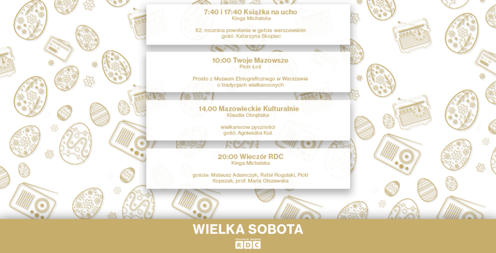 Z okazji Świąt Wielkanocnych w Polskim Radiu RDC przygotowaliśmy specjalne wydania naszych audycji, w których nie zabraknie ważnych rozmów i ciekawych spotkań.