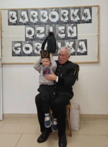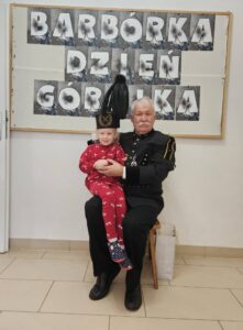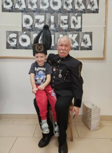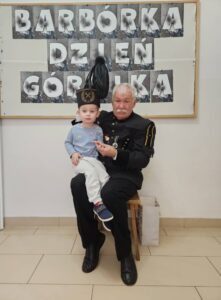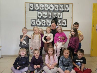 Z okazji ,,Barbórki” odwiedził nas wspaniały gość. Pan górnik, który opowiedział dzieciakom o swojej pracy, a także o ubiorze i kolorach pióropuszu na kapeluszu. Prezentacja odznaczeń, które posiadał, zrobiła na przedszkolakach ogromne wrażenie.