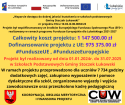 Projekt był realizowany od dnia 1 stycznia 2024r. do 31 lipca 2025r. w 6 Szkołach Podstawowych Gminy Stoczek Łukowski: