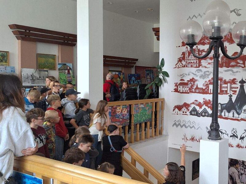 Kolejnym punktem programu było zwiedzanie Muzeum i Ośrodka Kultury Białoruskiej. Pracownica placówki oprowadziła uczniów po wystawach, prezentując bogatą kolekcję przedmiotów codziennego użytku, narzędzi rolniczych i strojów ludowych białoruskiej ludności Podlasia. Dzięki temu uczniowie poznali różnorodność kulturową regionu.