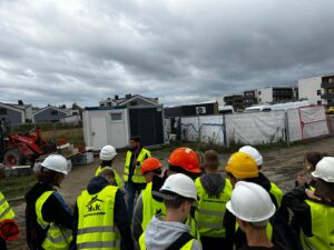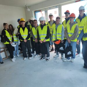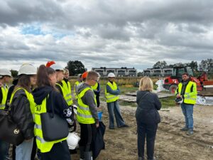 W dniu 17 września 2025r uczniowie kl. 3bb, w zawodzie technik budownictwa, uczestniczyli w wycieczce zawodowej, na budowę osiedla mieszkaniowego w Opolu. Osiedle obejmuje 17 budynków w zabudowie szeregowej, generalnym wykonawcą inwestycji jest firma K&K Hydrobud.