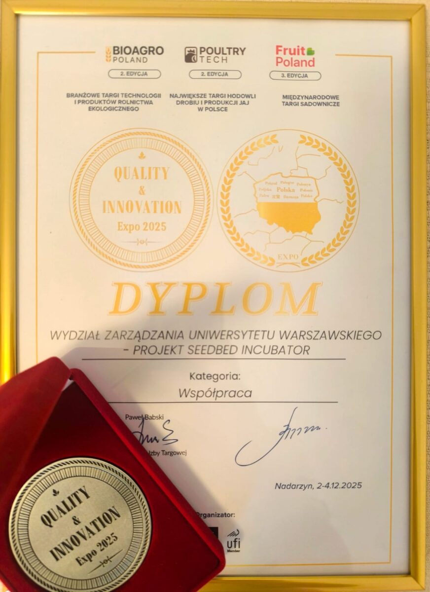 Otrzymane wyróżnienia stanowią dowód, iż zaangażowanie Wydziału Zarządzania UW w rozwój innowacji jest dostrzegane i cenione, a budowane przez nas partnerstwa odgrywają istotną rolę w kształtowaniu przyszłości branży rolno-spożywczej.