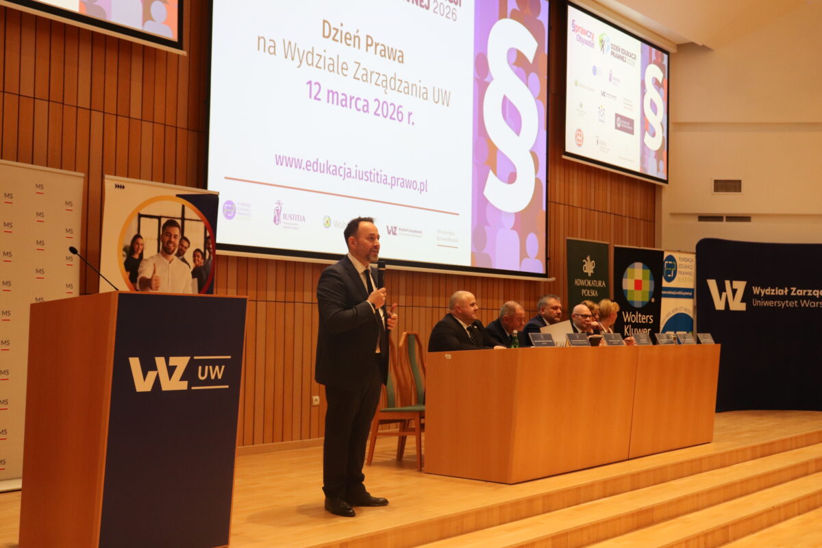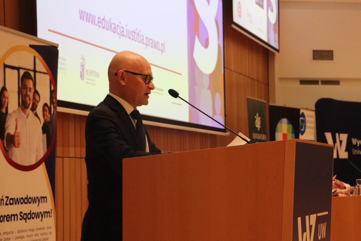 Uroczystego powitania gości dokonał dziekan WZ UW prof. dr hab. Grzegorz Karasiewicz, a moderatorem spotkania był wykładowca WZ UW, dr hab. Michał Możdżeń-Marcinkowski. W swoich przemówieniach podkreślających znaczenie edukacji prawnej wystąpili: Rektor UW prof. dr hab. Alojzy Z. Nowak oraz Minister Sprawiedliwości Waldemar Żurek.