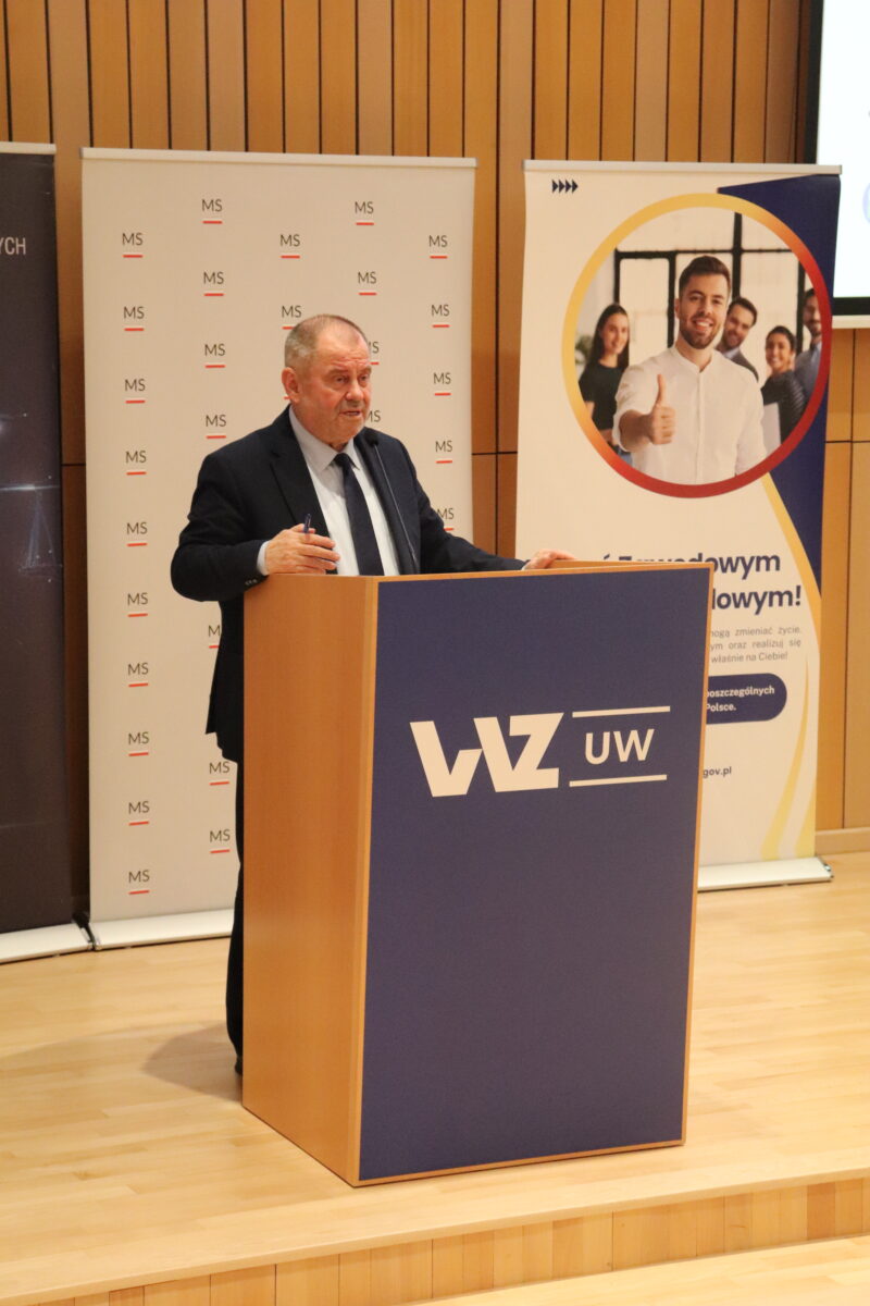 Gośćmi specjalnymi wydarzenia na WZ UW byli: Minister Sprawiedliwości Waldemar Żurek, Rektor Uniwersytetu Warszawskiego prof. dr hab. Alojzy Z. Nowak, Prorektor Uniwersytetu Warszawskiego dr hab. Adam Niewiadomski, prof. UW