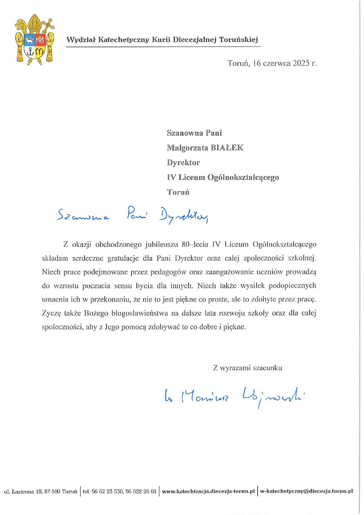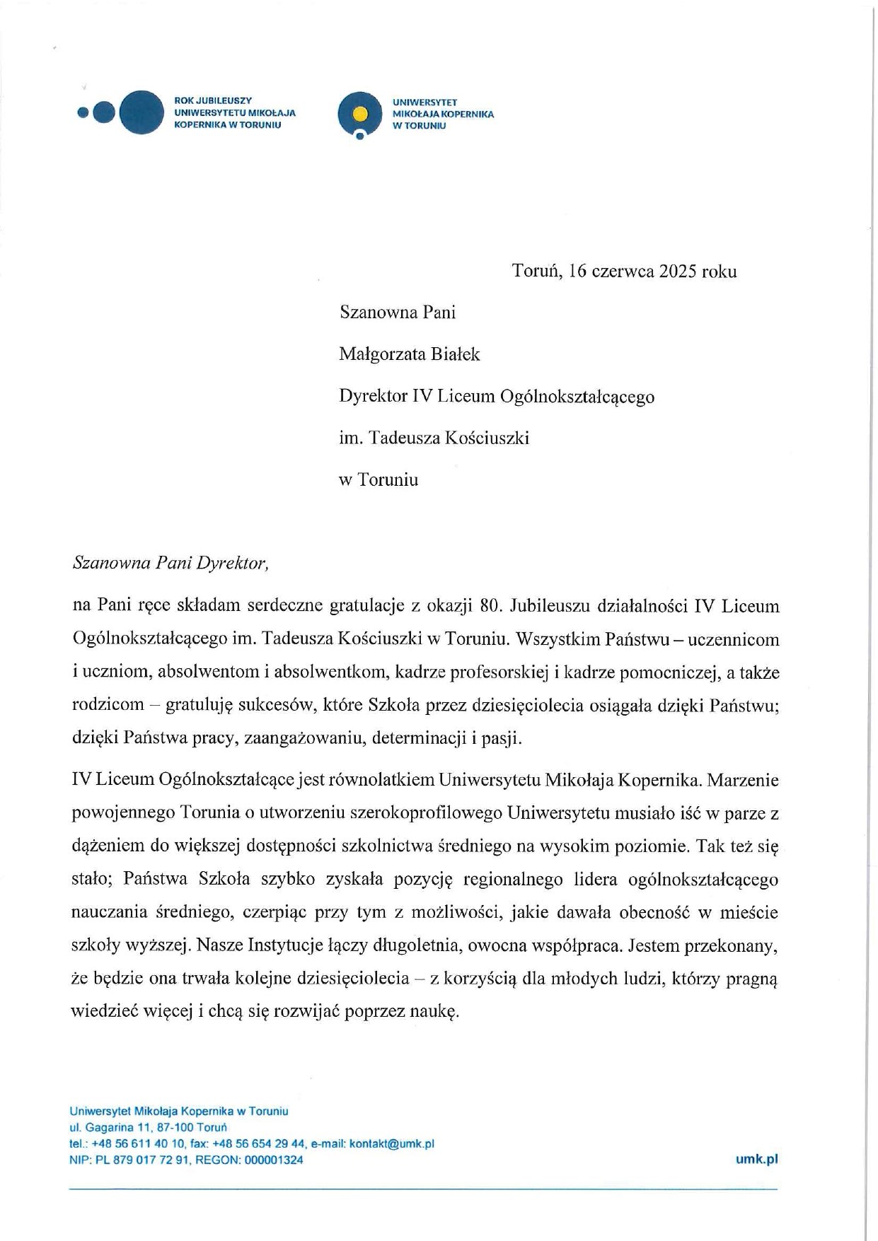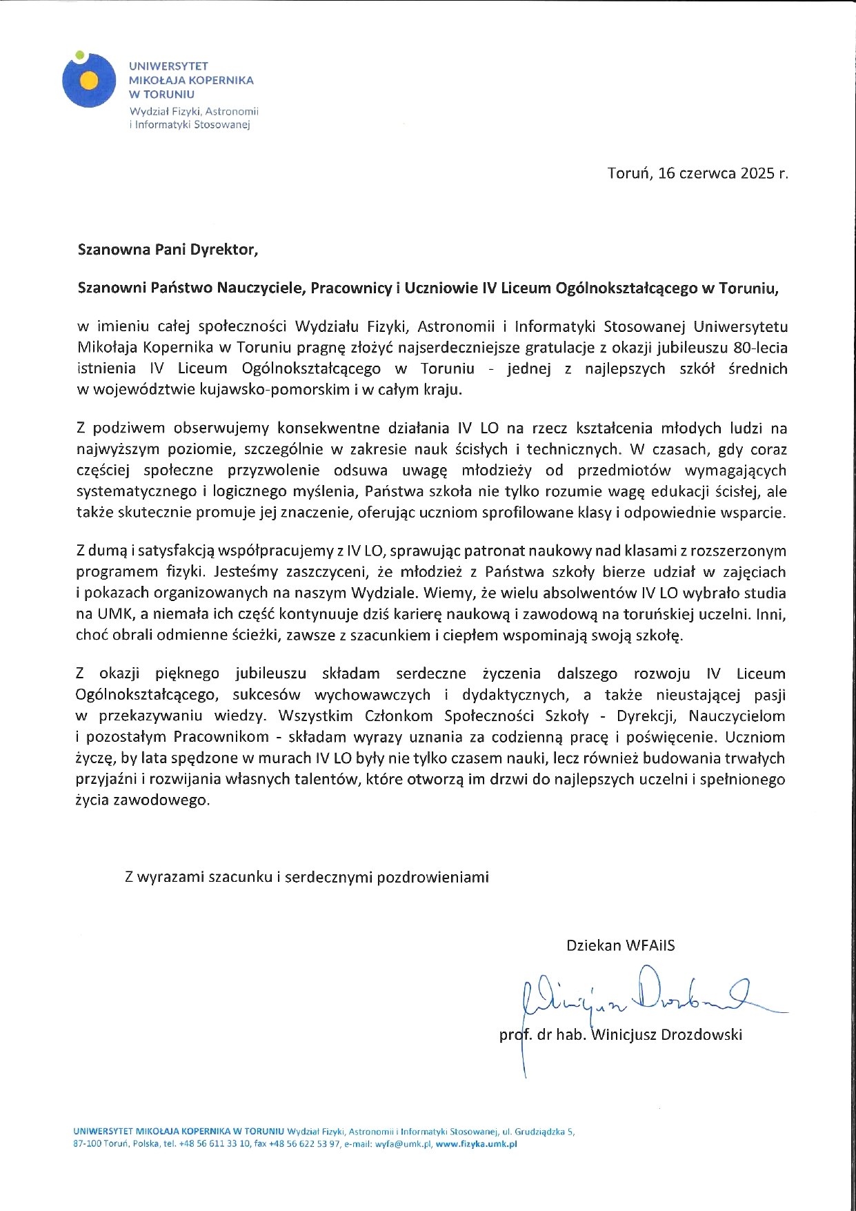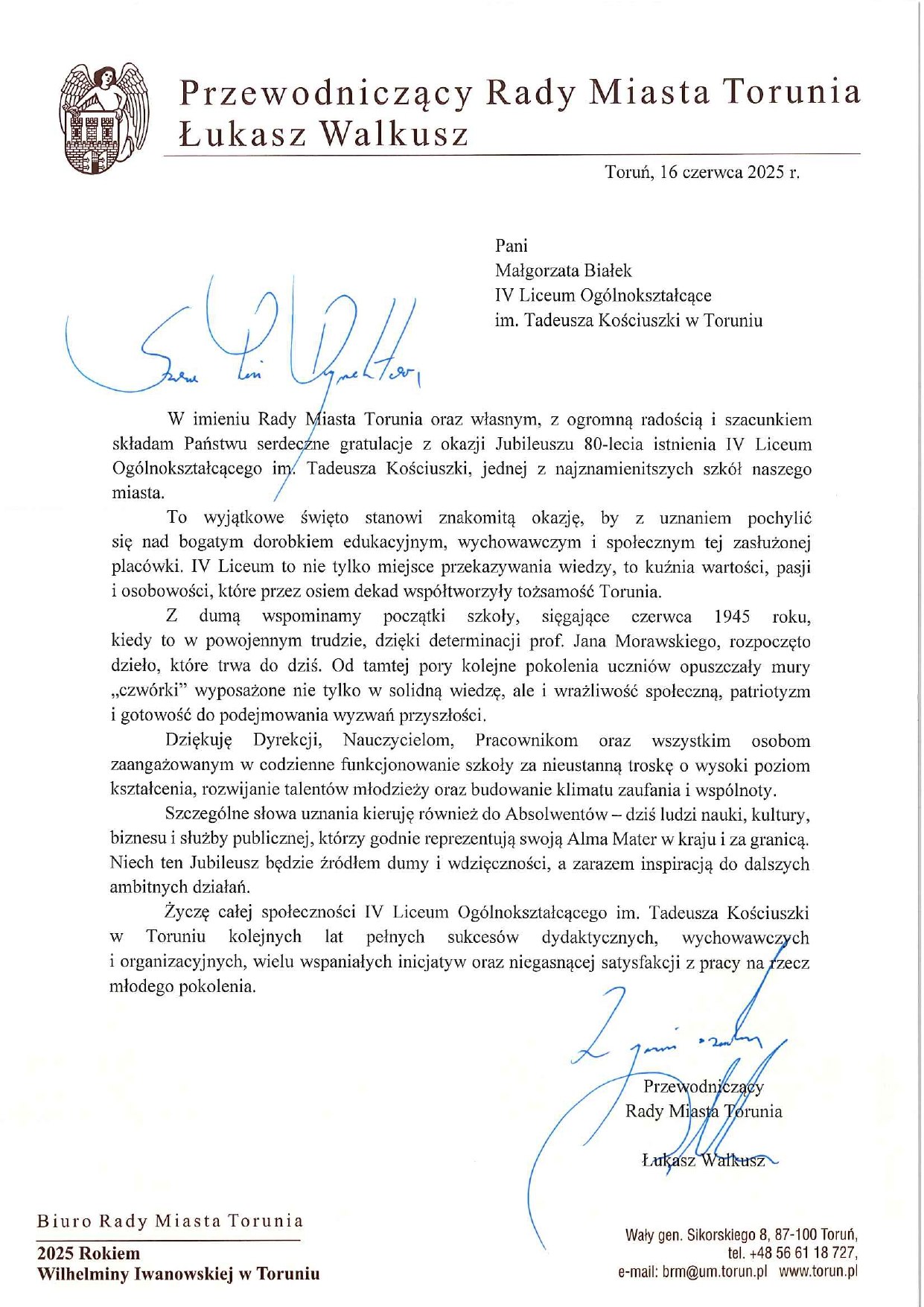 Z okazji 80-lecia naszej szkoły otrzymaliśmy wiele ciepłych słów, gratulacji i wyrazów uznania od instytucji, władz i przyjaciół szkoły. Część z nich prezentujemy w poniższej galerii – z dumą i wdzięcznością…