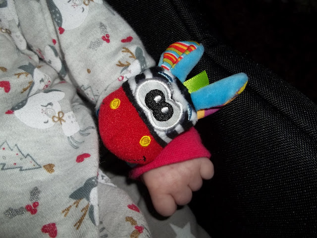 Na początku dzieci jeszcze były za małe na te grzechotki, miesiąc temu nie potrafiły jeszcze tak machać rączkami itp. Więc efekt był słaby... schowałam te bransoletki :( Teraz gdy osiągnęły już 4 miesiące i dobrze wiedzą iż są rączki, paluszki, iż można je wkładać do buzi i machać nimi, zabawki od Sozzy sprawdzają się idealnie :)