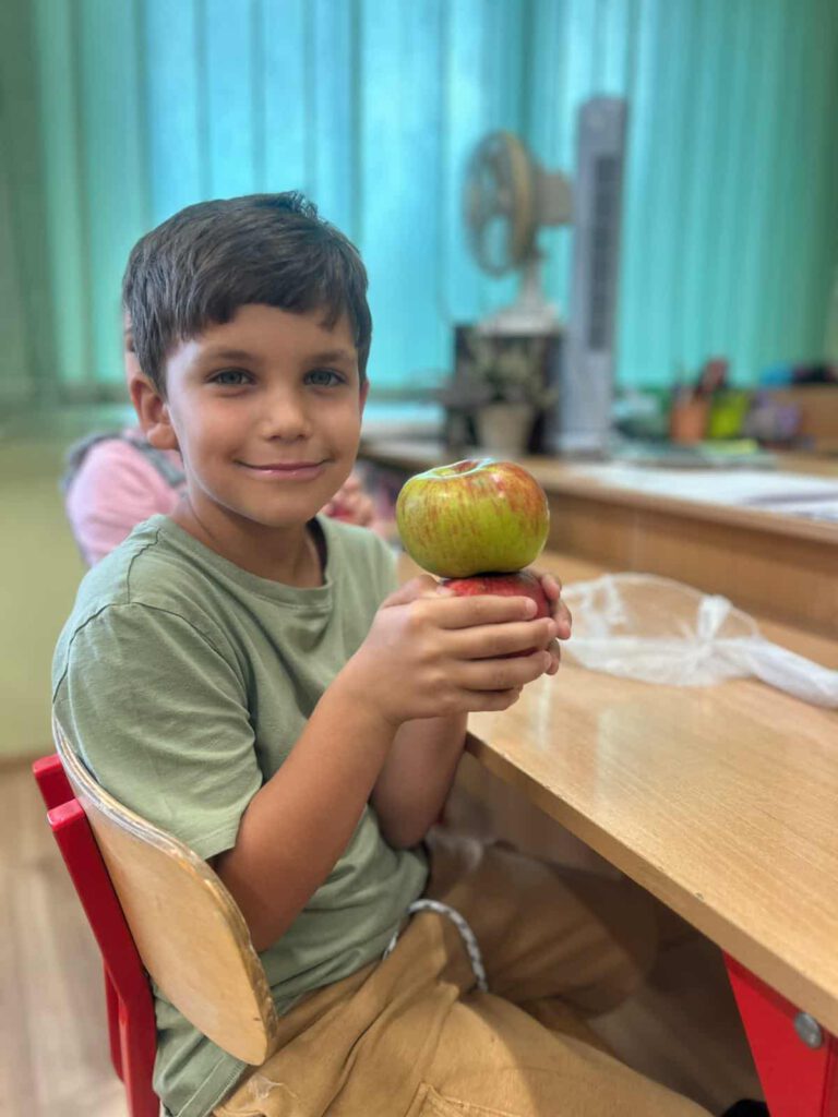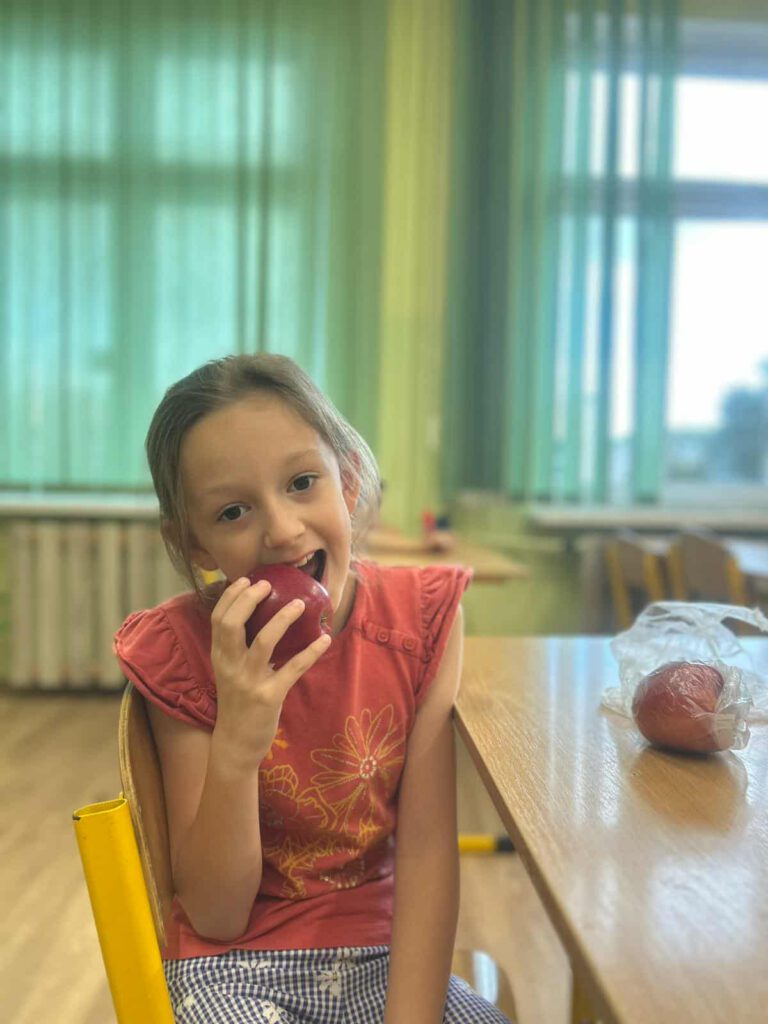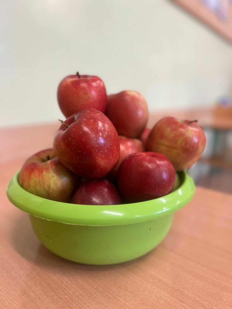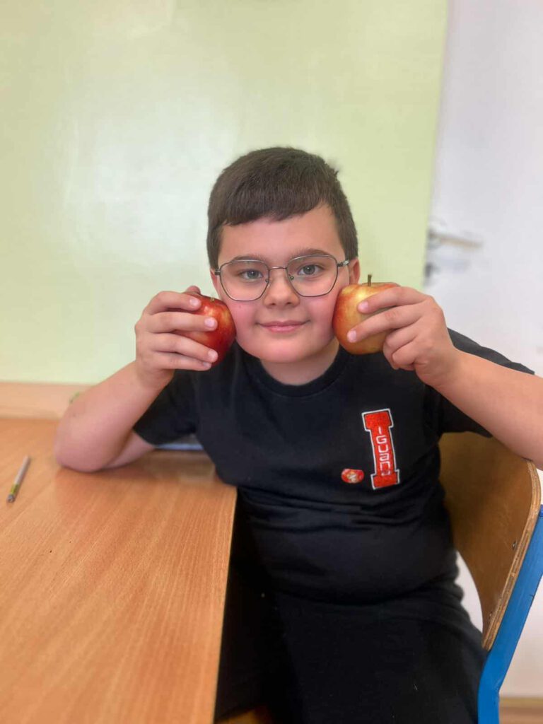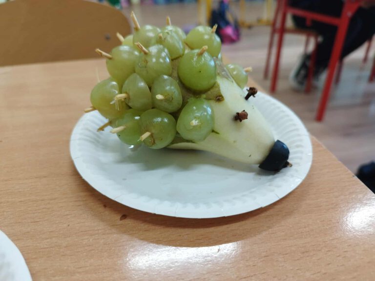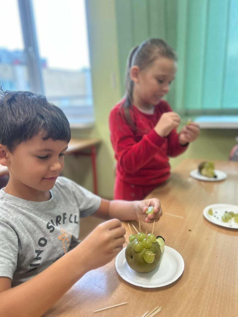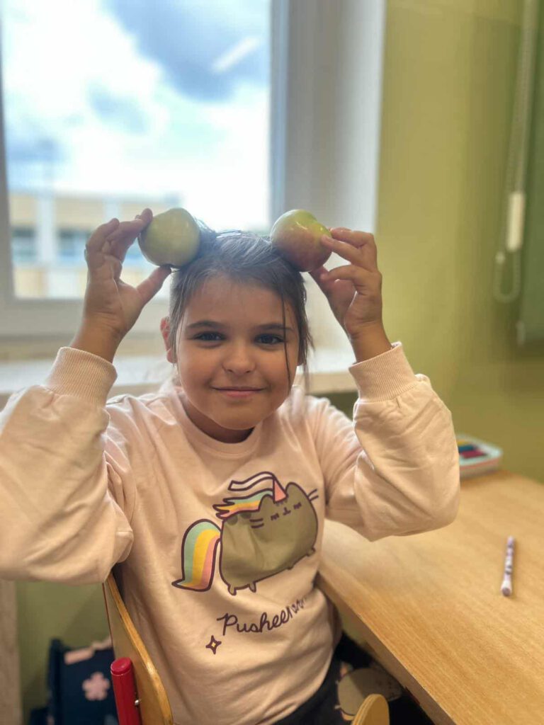 We wrześniu uczniowie klasy 2d uczestniczyli w klasowym projekcie pod nazwą „W świecie owoców i warzyw”. Przez kilka dni poznawali i omawiali adekwatności, budowę oraz możliwości przetwarzania owoców i warzyw. Poznali piramidę zdrowego żywienia i aktywności fizycznej oraz wiersz „Na straganie”, samodzielnie wykonali owocowego jeża, którego później ze smakiem zjedli, wykonali tematyczne prace plastyczne oraz w ramach Dnia Jabłka, który był częścią projektu, samodzielnie wykonali sok z jabłek, poznając jednocześnie zasady działania sokowirówki.