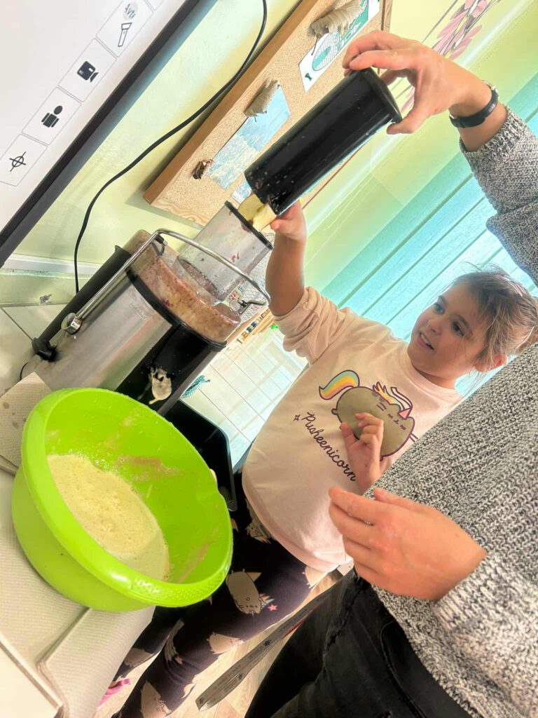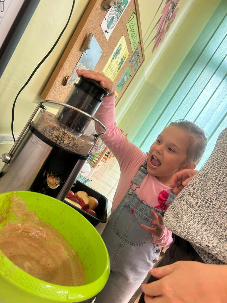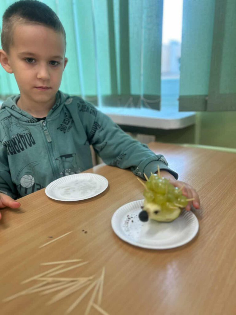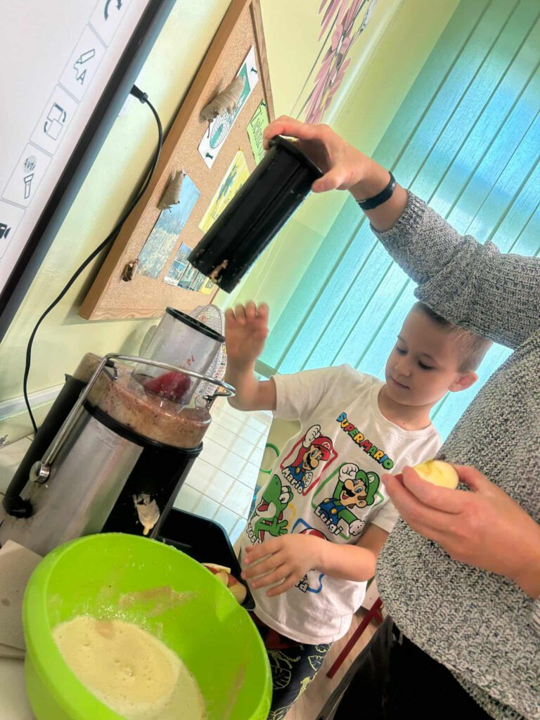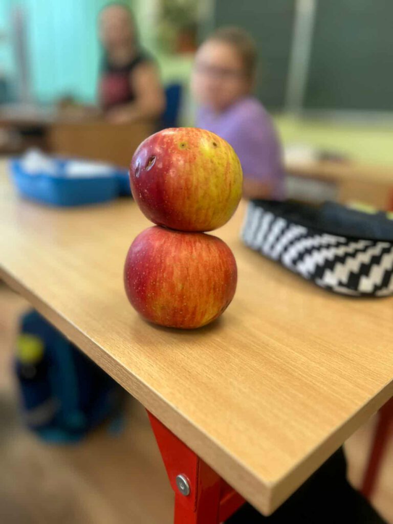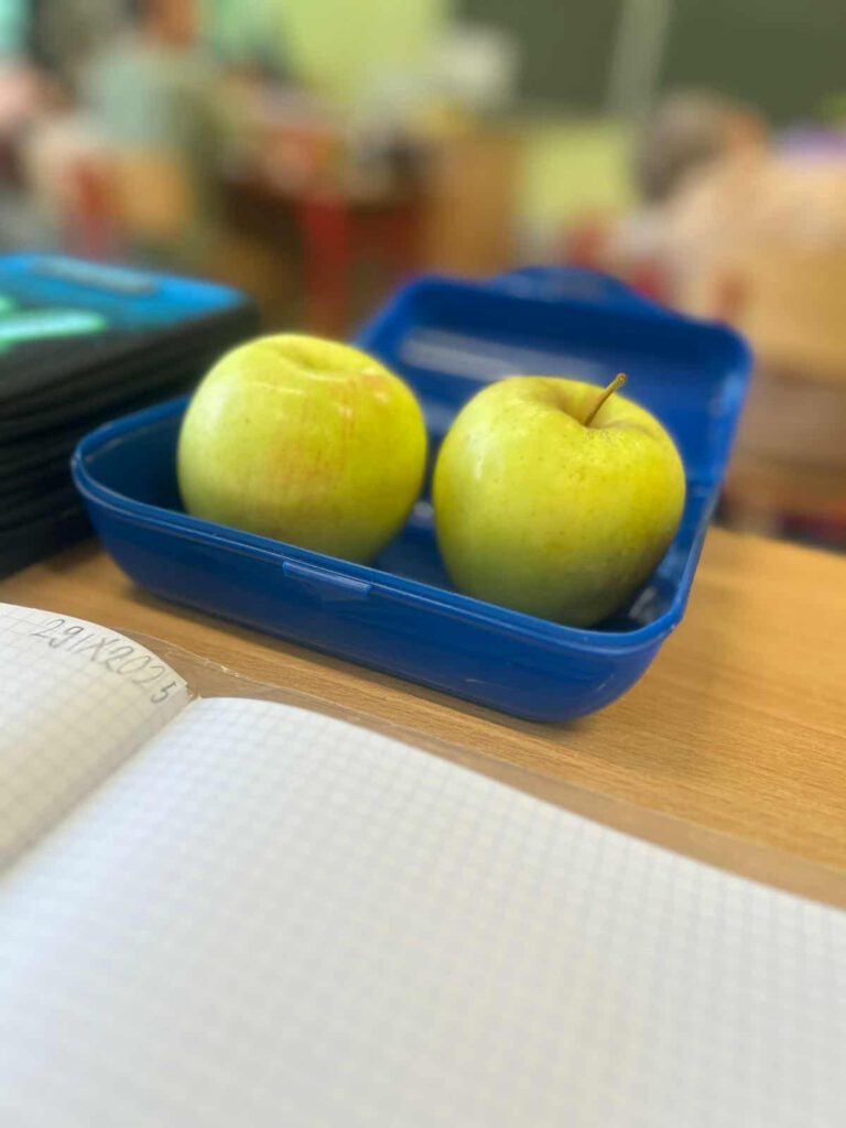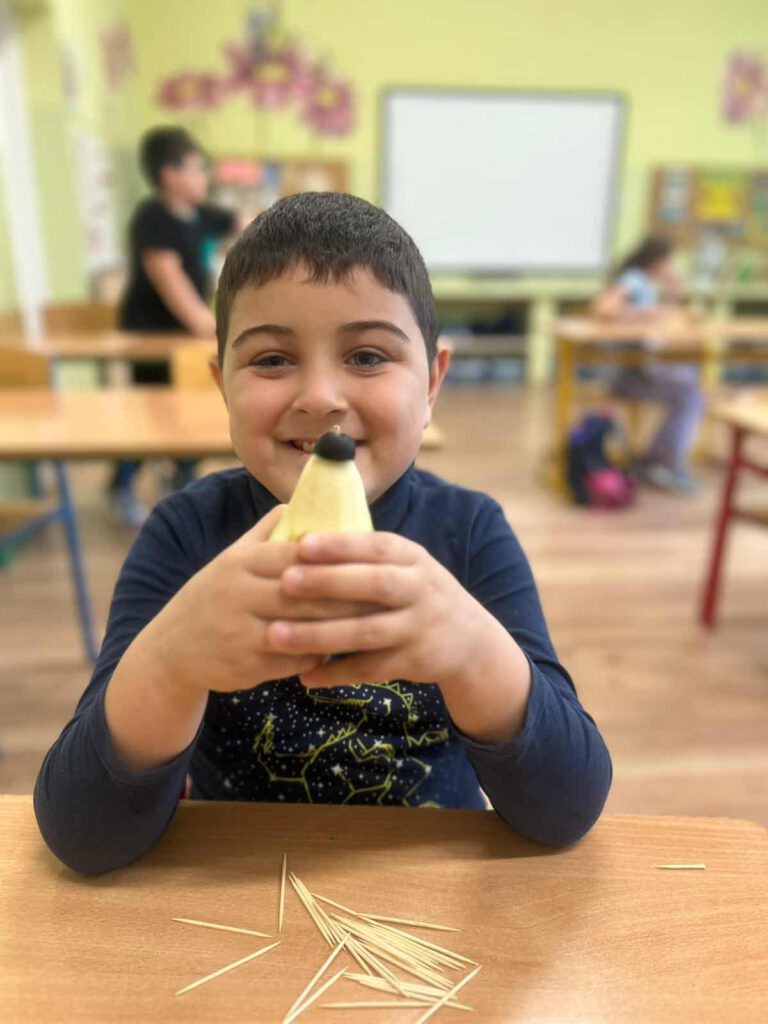 We wrześniu uczniowie klasy 2d uczestniczyli w klasowym projekcie pod nazwą „W świecie owoców i warzyw”. Przez kilka dni poznawali i omawiali adekwatności, budowę oraz możliwości przetwarzania owoców i warzyw. Poznali piramidę zdrowego żywienia i aktywności fizycznej oraz wiersz „Na straganie”, samodzielnie wykonali owocowego jeża, którego później ze smakiem zjedli, wykonali tematyczne prace plastyczne oraz w ramach Dnia Jabłka, który był częścią projektu, samodzielnie wykonali sok z jabłek, poznając jednocześnie zasady działania sokowirówki.