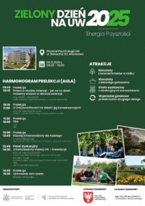 6 listopada już po raz trzeci odbędzie się Zielony Dzień na UW. Tegoroczna edycja jest otwarta dla całej społeczności akademickiej oraz mieszkańców Warszawy. „Zielony Dzień na Uniwersytecie Warszawskim – Energia Przyszłości” to wydarzenie, którego celem jest: