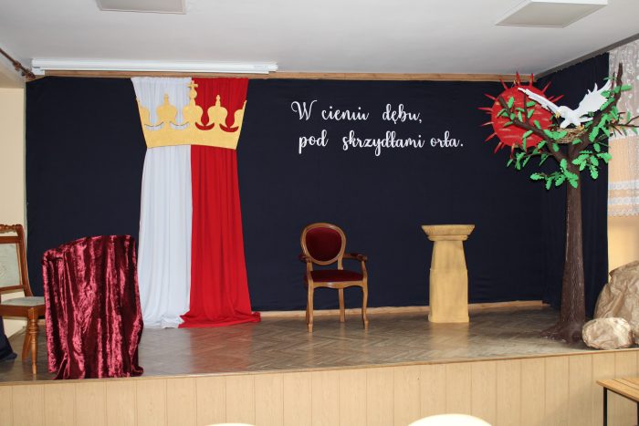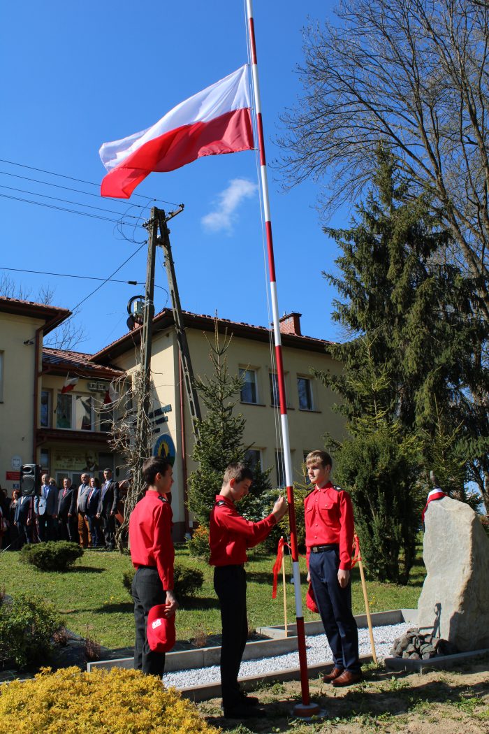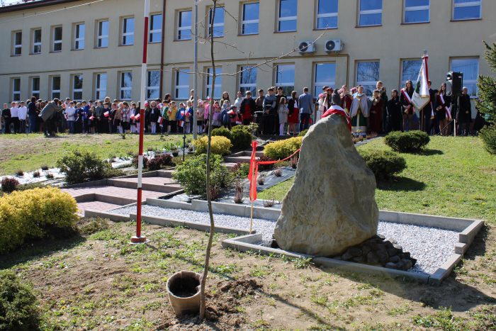 Podczas uroczystości odsłonięto kamień z pamiątkową tablicą oraz orłem. Wydarzeniu towarzyszyło również posadzenie dębu, oraz montaż masztu, na którym z dumą będzie powiewać flaga narodowa.