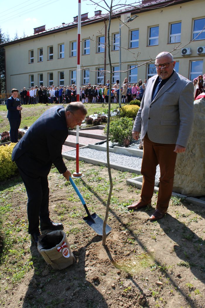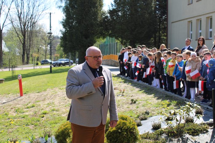 W sposób szczególny chce podziękować dyrektorowi szkoły Panu Wacławowi Kołczakowi, za zaangażowanie w organizację tej uroczystości oraz przygotowanie miejsca, które będzie służyć jako przestrzeń do kultywowania pamięci historycznej i postaw patriotycznych.