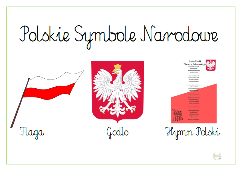 – Dziecko wymienia symbole narodowe, uczestniczy w ,,żywej fladze”